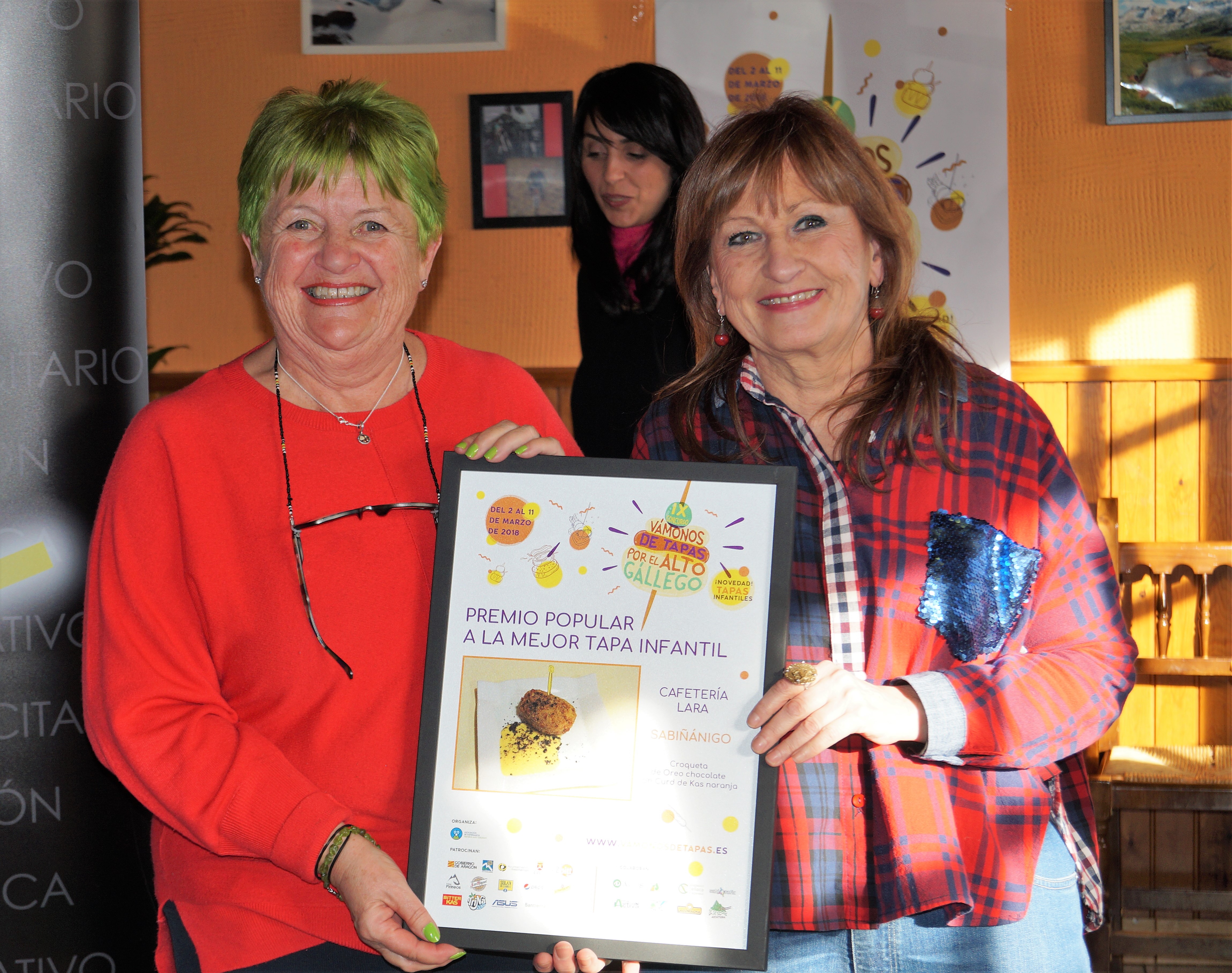 - Premio a la Mejor Tapa apta para Celíacos para Albóndiga de Bacalao a la Aragonesa con alioli de Reineta a la Sidra, de Cafetería Lara de Sabiñánigo.