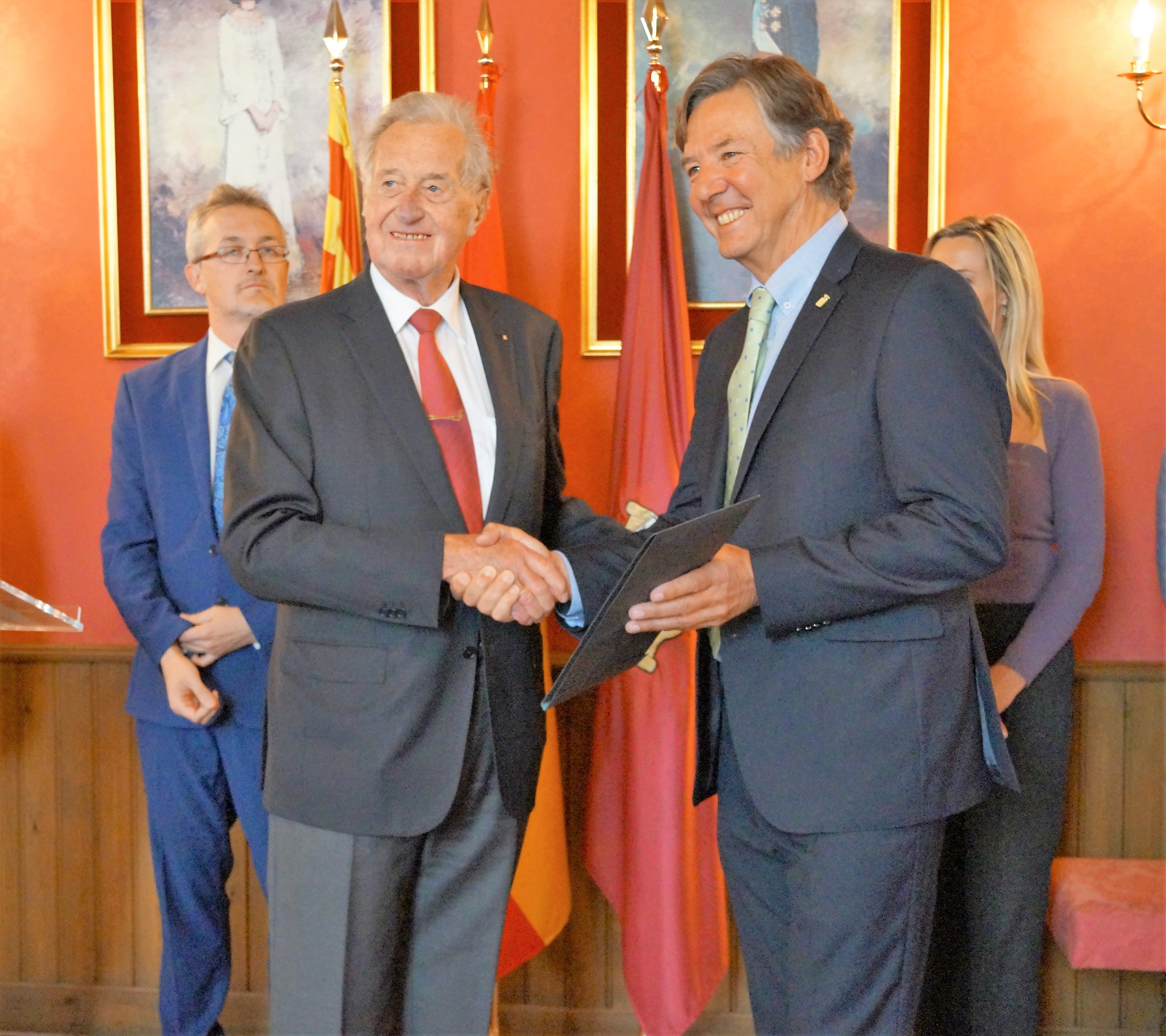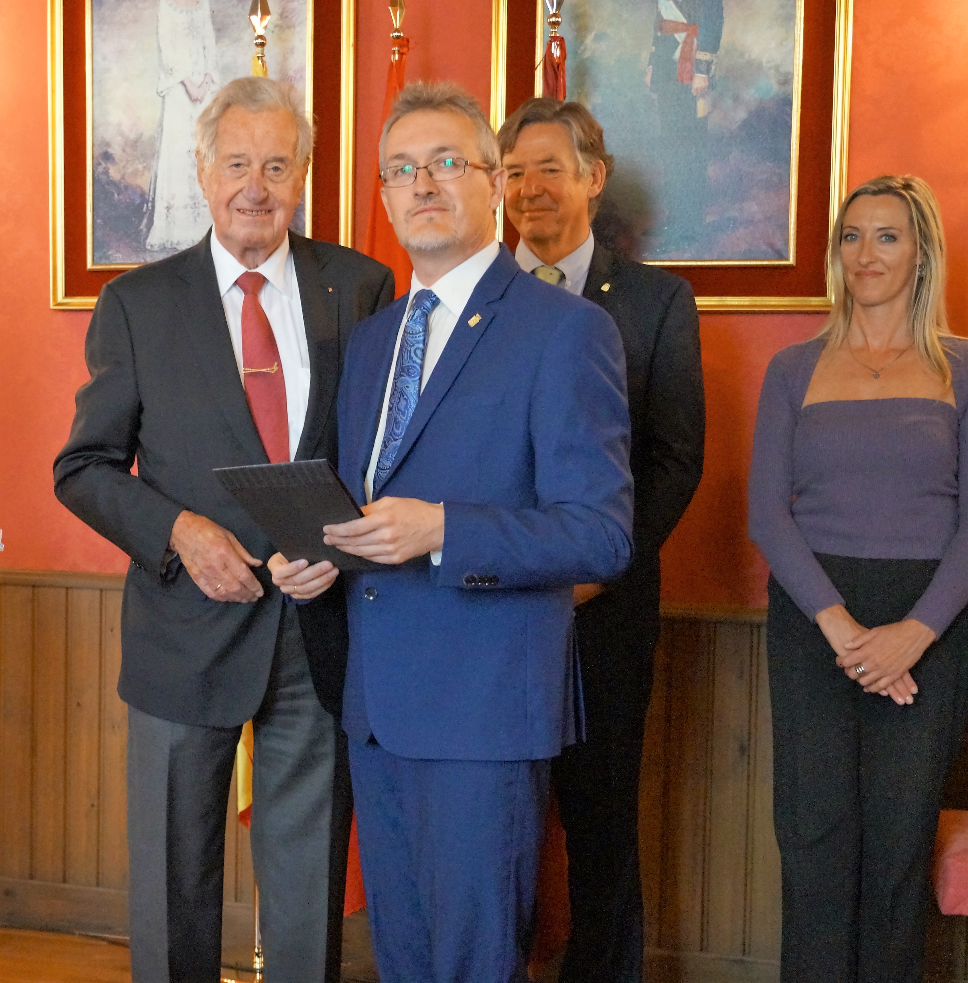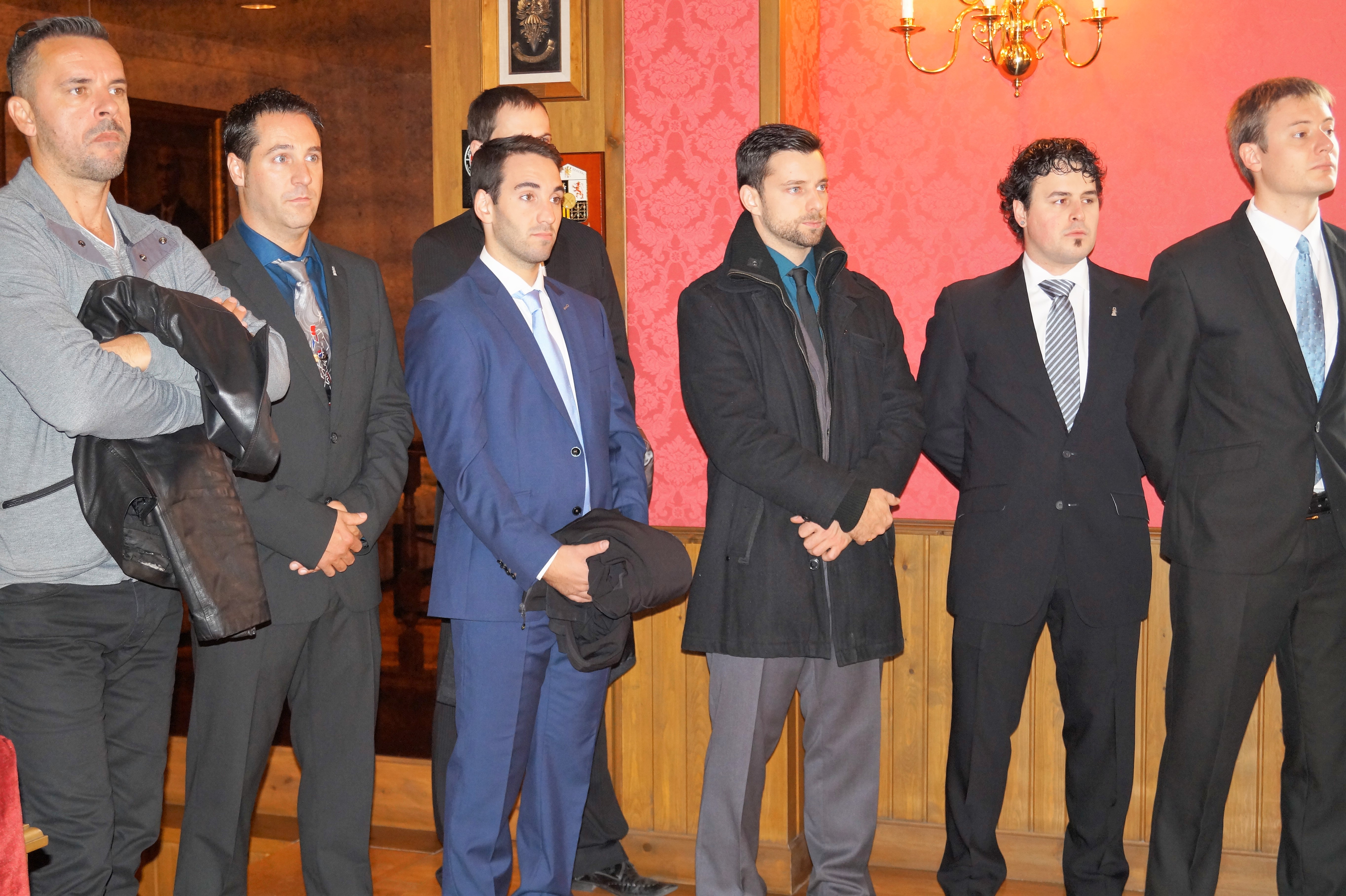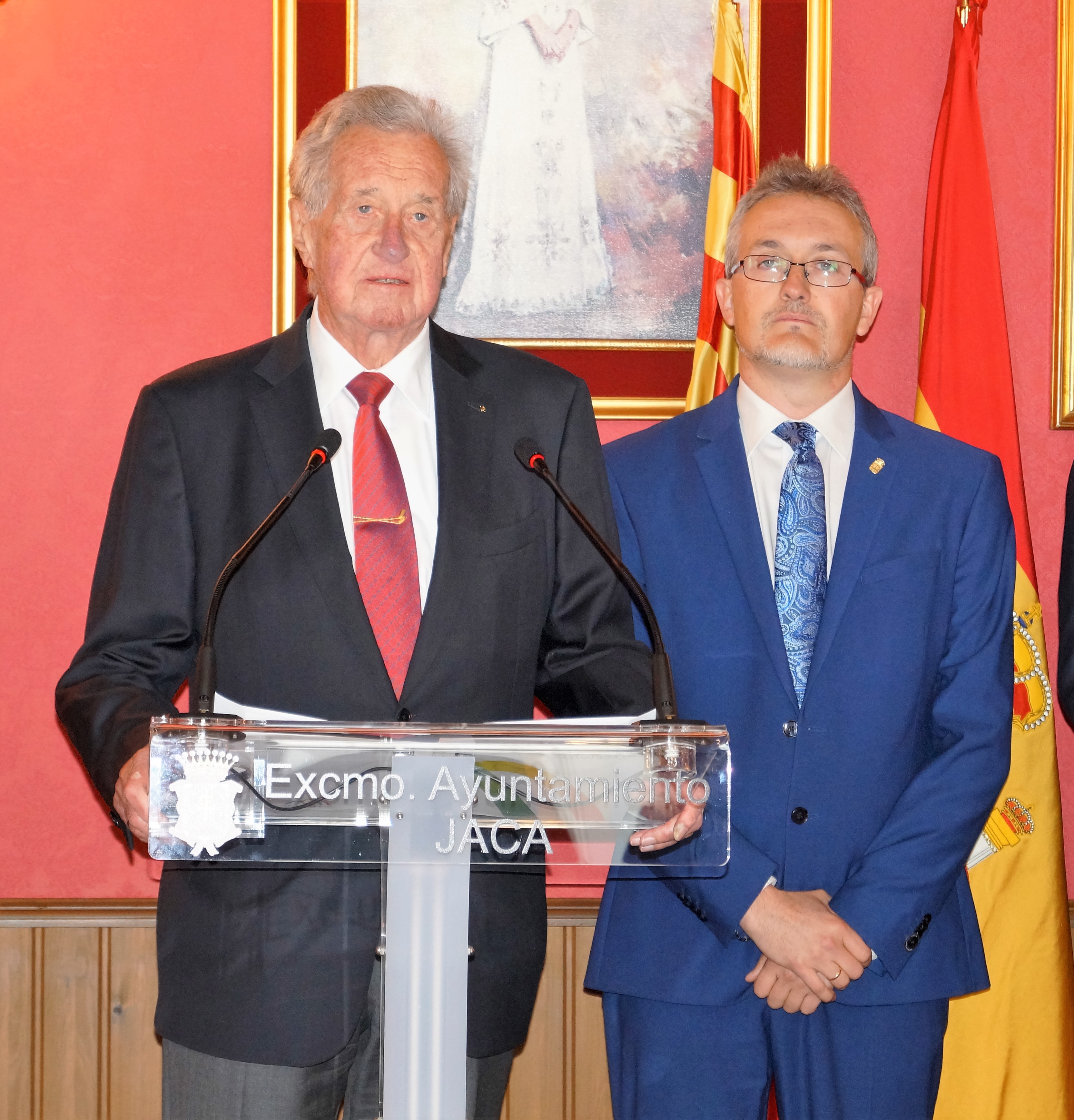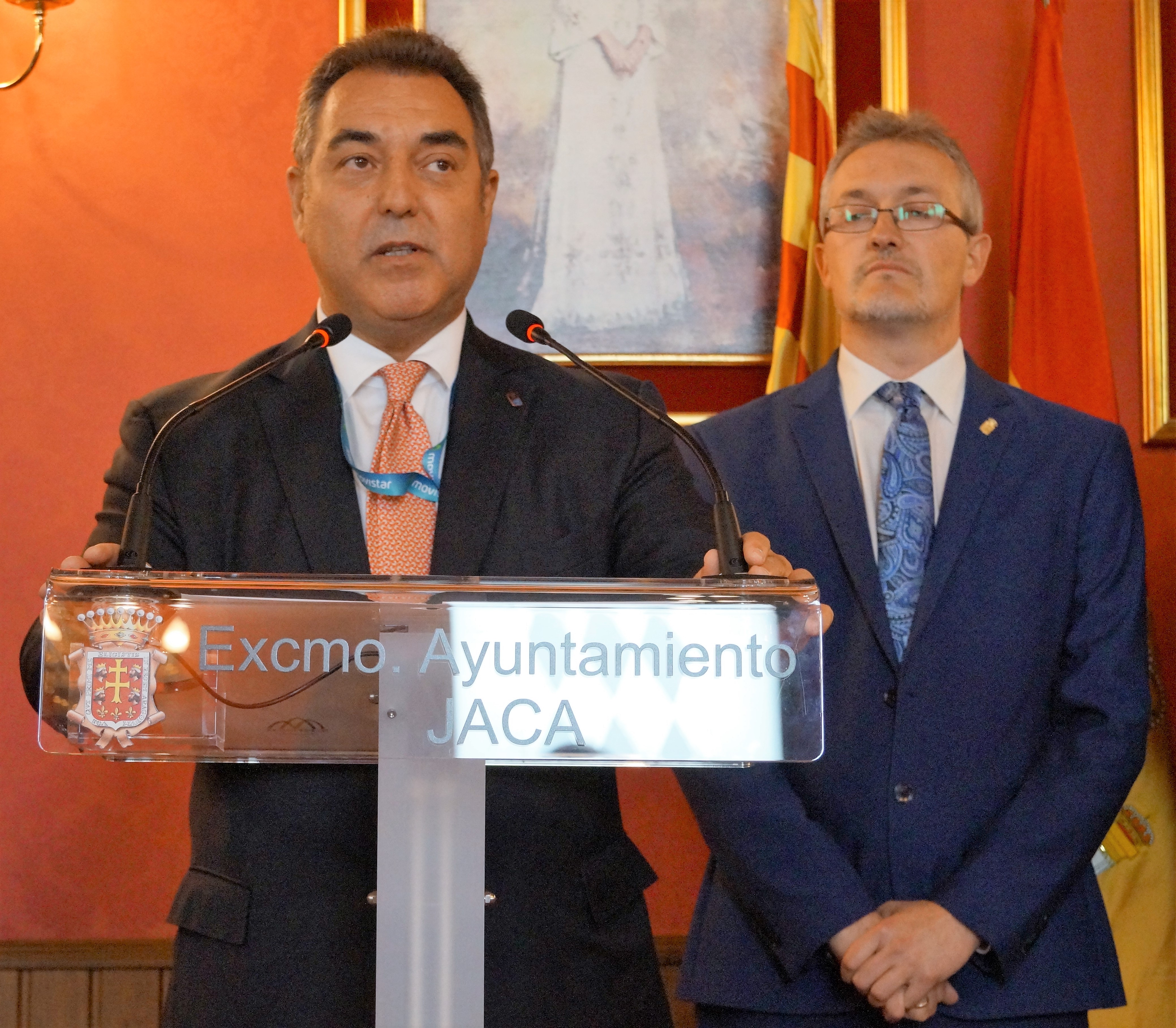 Junto al alcalde, se encontraba el concejal de Deportes, Enrique Muñoz y otros ediles de la Corporación, así como Eric Bastide y Sergio Lope, presidente y gerente, respectivamente, del Club Hielo Jaca.