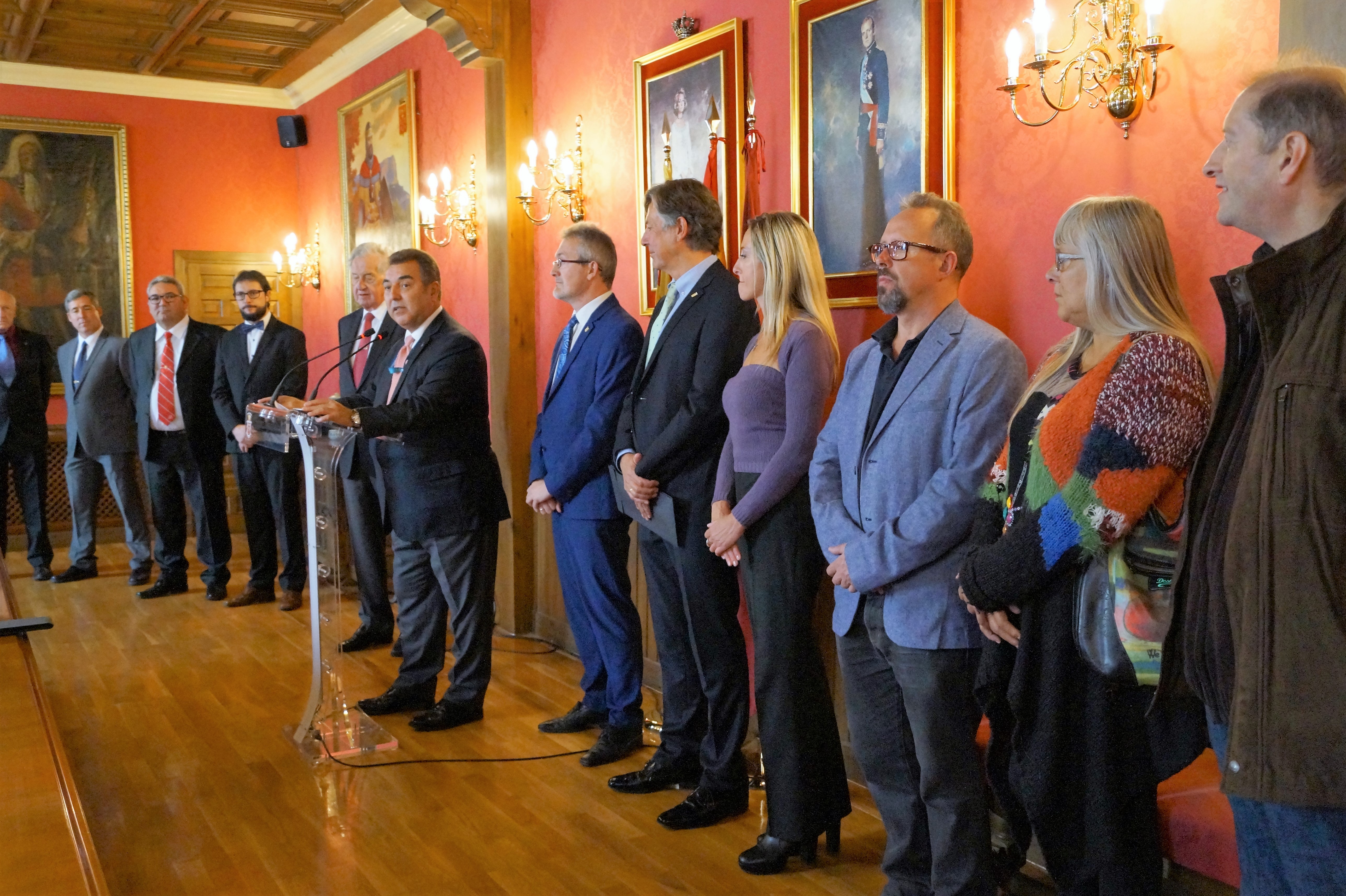 La Continental Cup by Movistar vivía esta mañana su puesta de largo con una recepción municipal en la que la Corporación, representada por el alcalde de Jaca, Juan Manuel Ramón, ha hecho los honores a las delegaciones de los diferentes países participantes en la competición, así como a autoridades y representantes la IIFH, organismo deportivo organizador del evento.