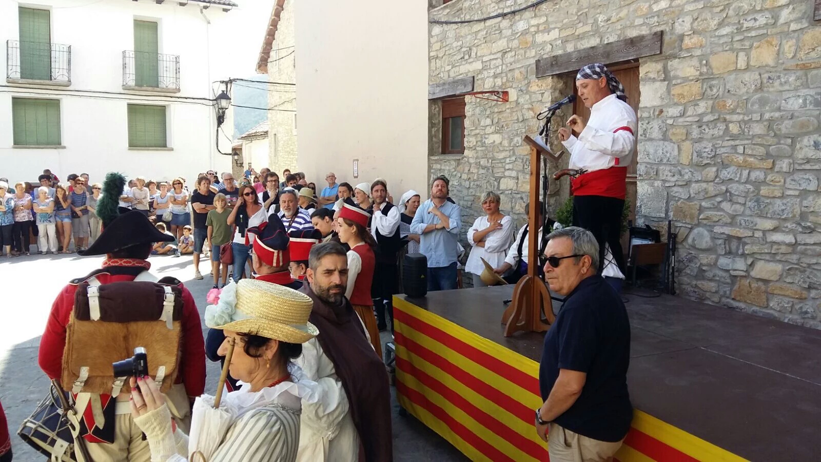 El consejero de Vertebración del Territorio, Movilidad y Vivienda, José Luis Soro, y la presidenta de la Comarca de la Jacetania, Montse Castán, participaban en los actos de homenaje a la figura del Miguel Sarasa i Lobera en Embún, una programación que comenzaba a las 11.30 horas y que ha contado con el desfile a cargo de la Asociación de Voluntarios de Aragón, una escena de recreación histórica que ha captado la atención de cientos de personas.