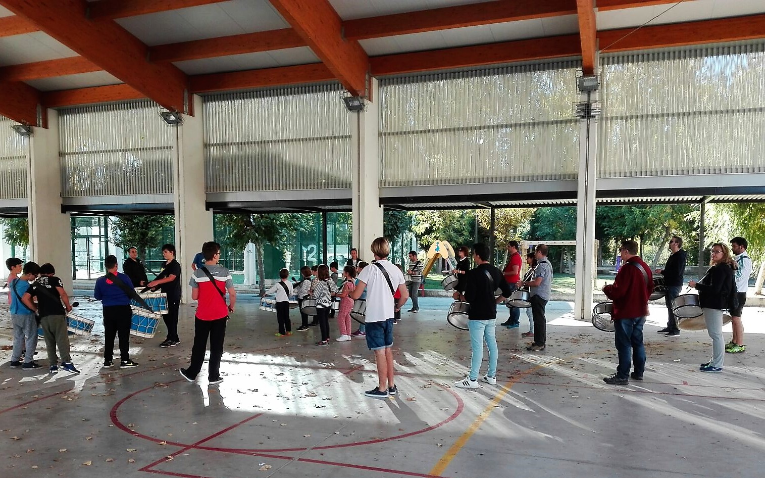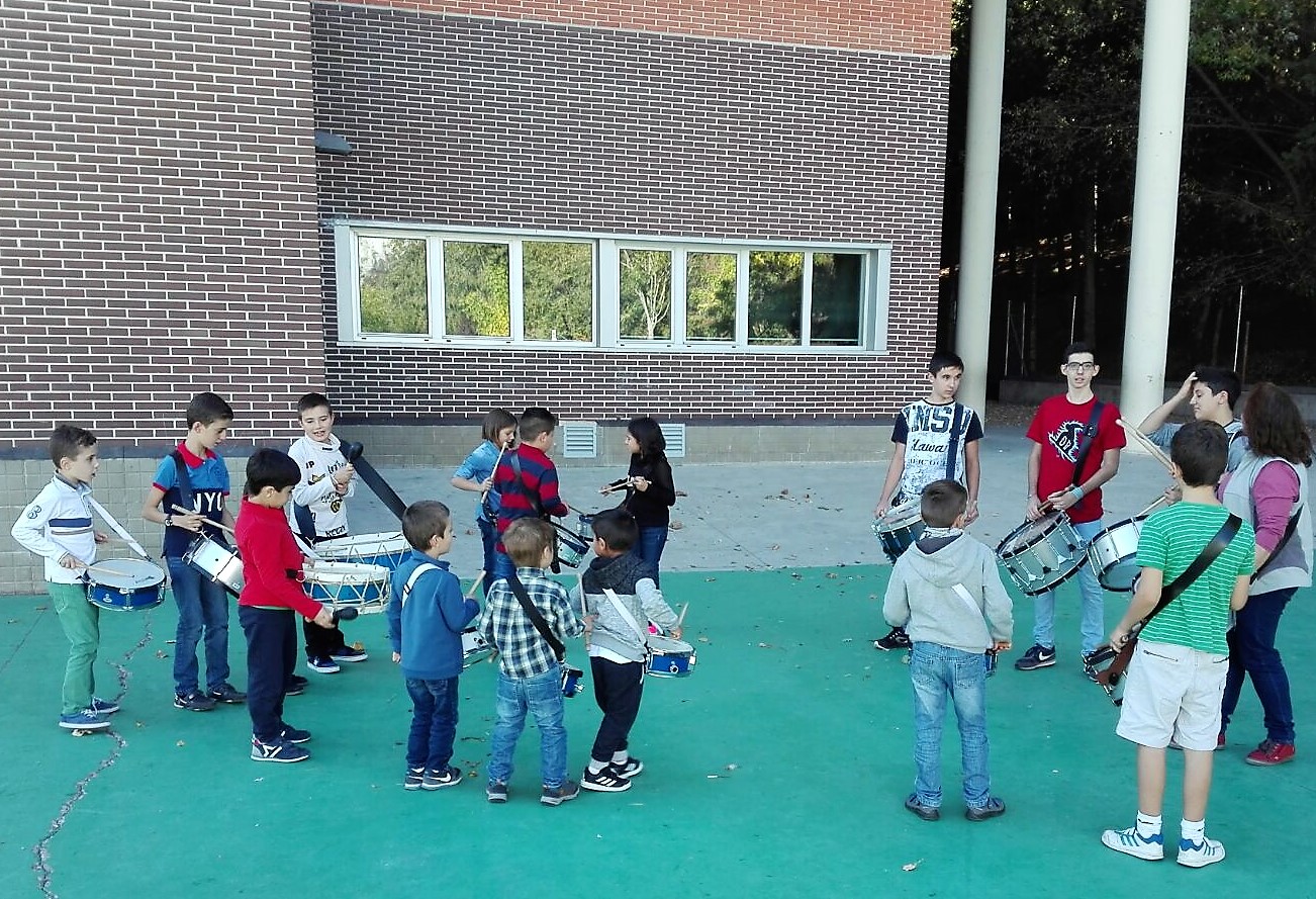 Este sábado daban comienzo en el colegio Escuelas Pías de Jaca los ensayos de la banda de tambores y bombos de la Cofradía de la Entrada de Jesús en Jerusalem, más conocida en la localidad como La Burreta.