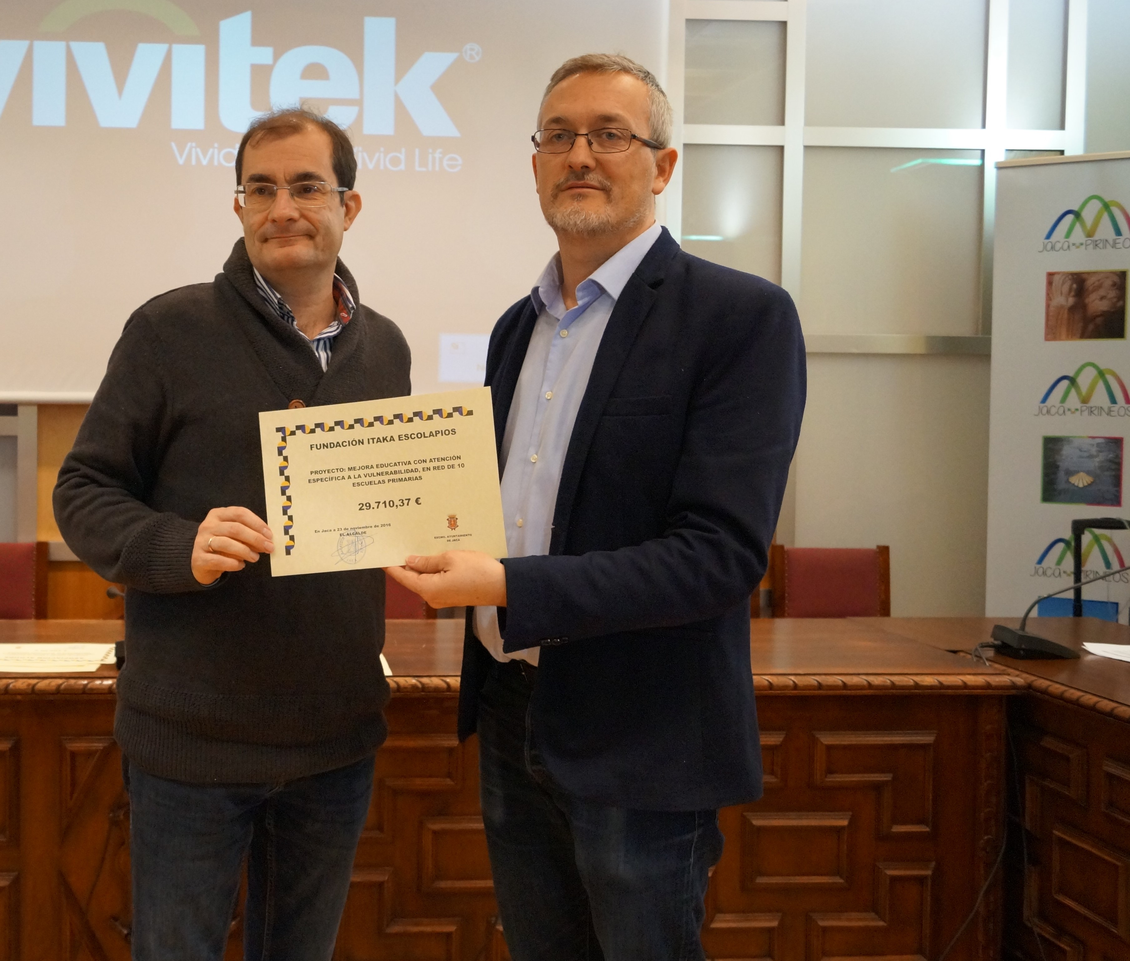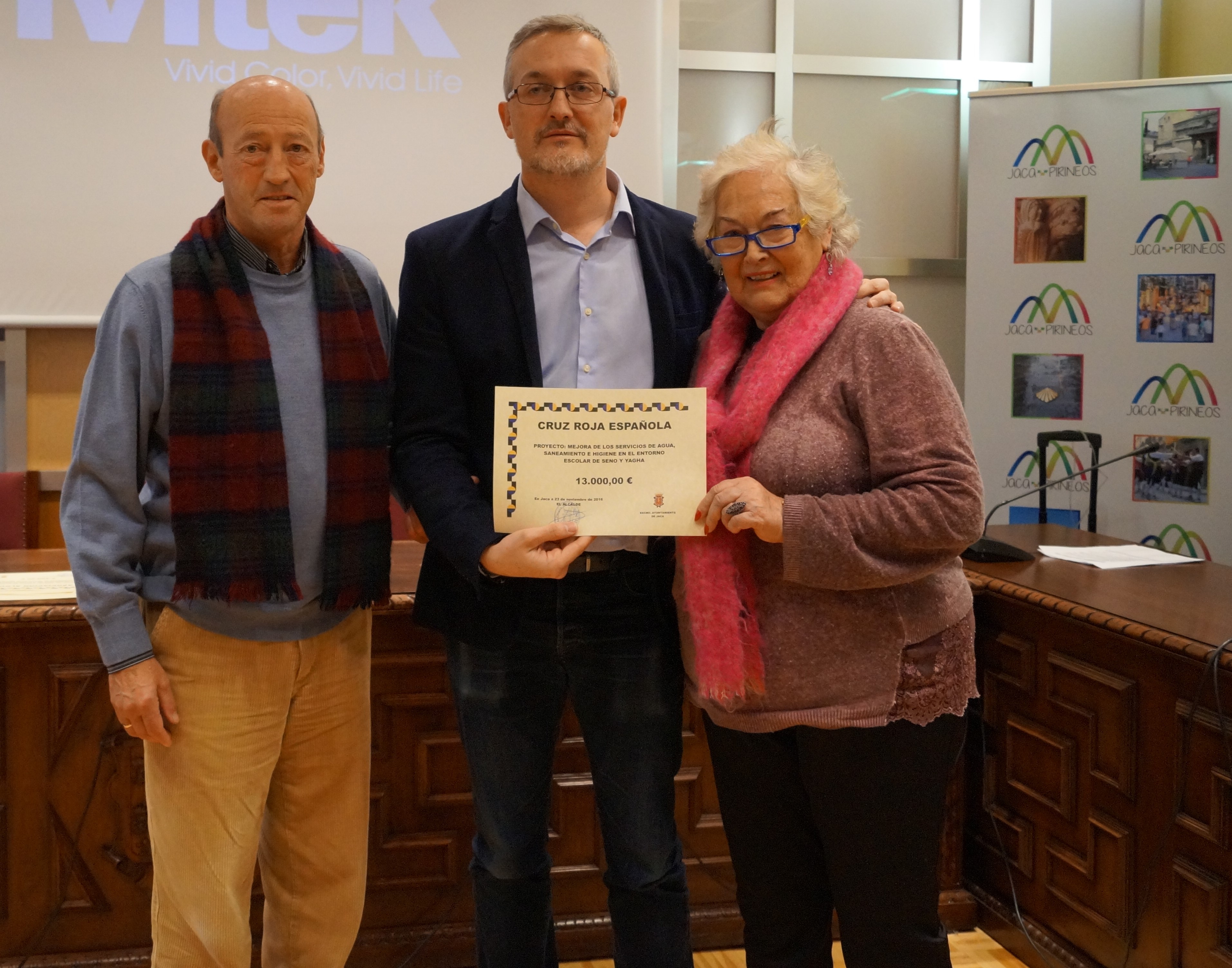 El alcalde de Jaca, Juan Manuel Ramón, ha hecho entrega de las ayudas a las organizaciones en un acto simbólico, durante el que representantes de cada una de ellas han explicado los proyectos a los que irán a parar los fondos y la realidad social, cultural y de pobreza extrema de los países en los que se desarrollan. En el acto han participado los representantes de Entarachen Vols, Itaka Escolapios, Más Vida, Manos Unidas, Cruz Roja y Acción sin Fronteras.