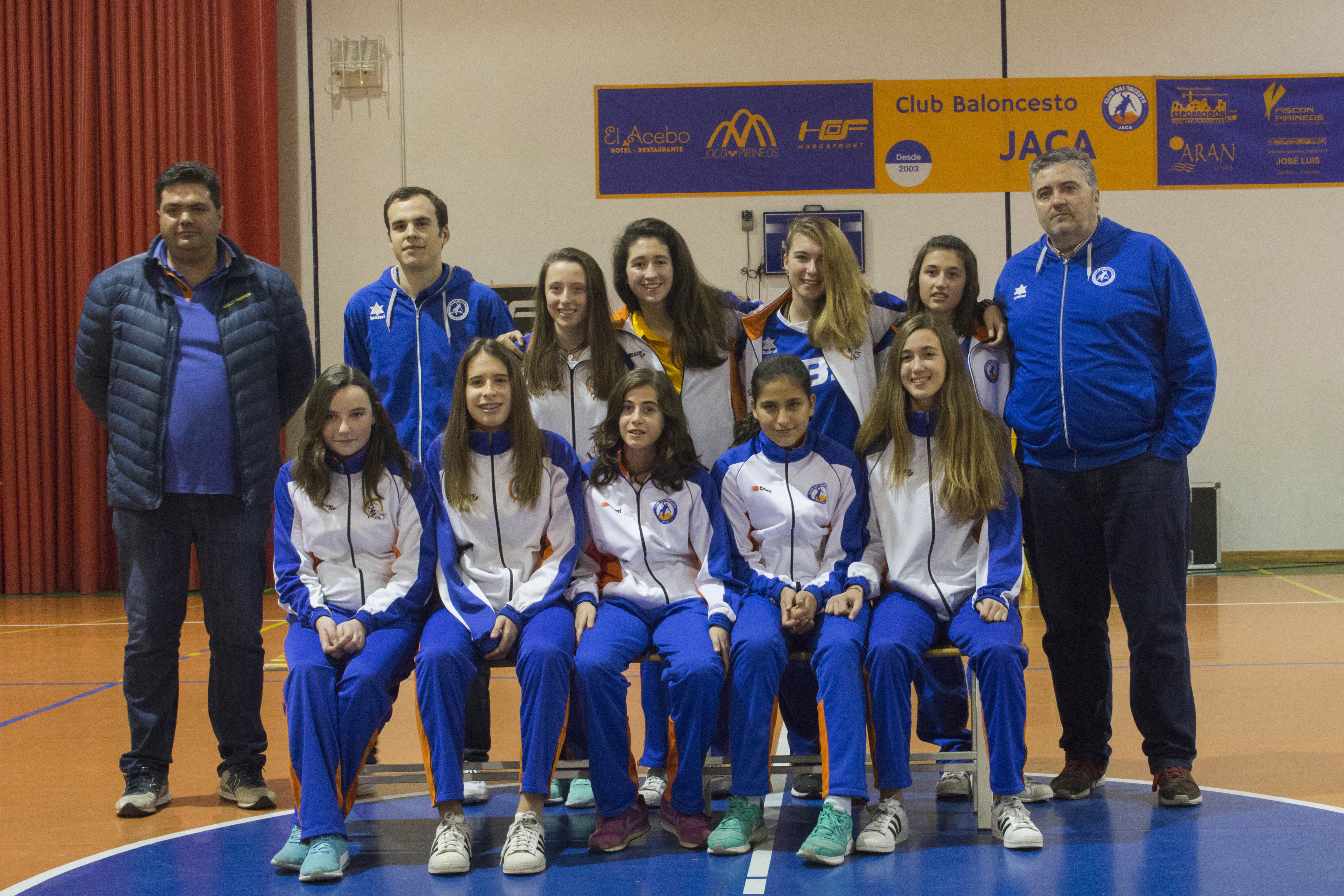 Tras el partido de primera aragonesa que enfrentaba al líder de la categoría contra Hoscafrost Jaca, con las gradas llenas de padres, comenzaba la presentación con la colaboración de Cadena Cope Jaca y, como si de una retransmisión de un programa de radio se tratase, se iban presentando a los jugadores y equipos, con sus respectivas entrevistas a jugadores y entrenadores. Como es costumbre en las presentaciones del club, no faltó el sorteo del jamón y de regalos, en una fiesta del baloncesto que concluyó con chocolatada para todos los asistentes, con la colaboración del Horno Jaqués.