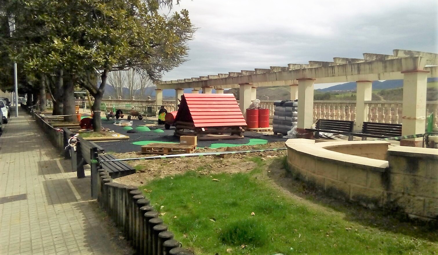 La reforma del parque infantil ubicado en el Paseo de Invierno de Jaca está a punto de concluir. El Ayuntamiento ha sustituido la antigua placa de hormigón por una nueva, tras lo que se ha procedido a la colocación de un nuevo suelo de caucho reciclado con efecto amortiguador. Asimismo, esta superficie, diseñada para mejorar la seguridad de los más pequeños, se ha ampliado hasta los 220 metros cuadrados, lo que ha llevado también a la modificación de alguna de las zonas ajardinadas de este recinto.