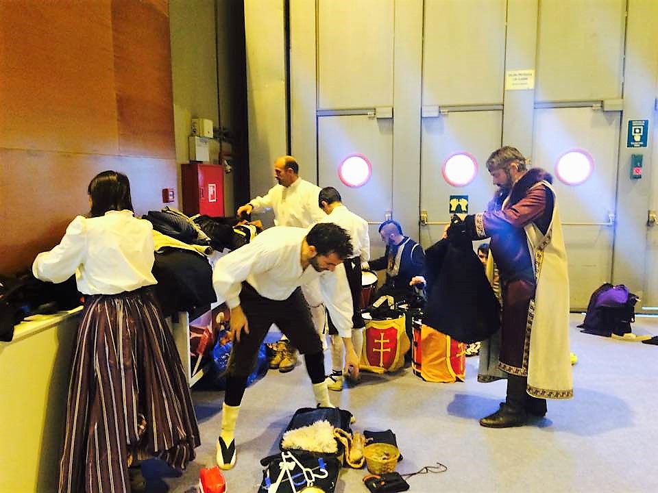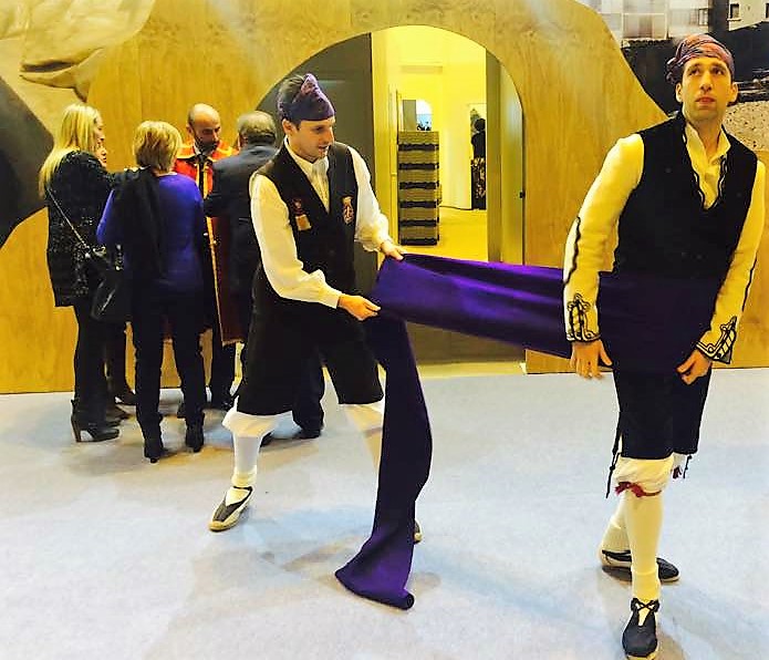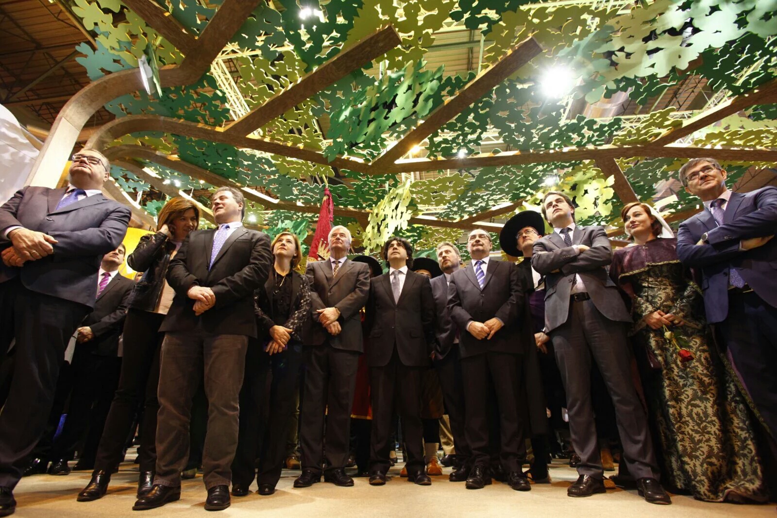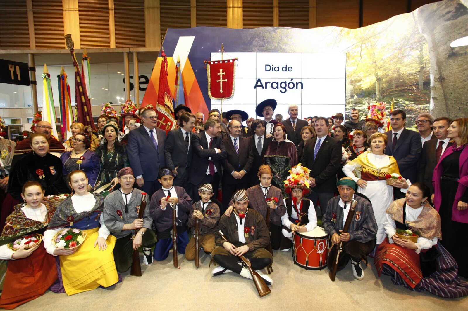 Unas 70 personas formaban parte de la expedición jaquesa a Fitur: el Conde Aznar y su séquito, el Cortejo Histórico, las banderas y una representación de todas las escuadras, de labradores y labradoras y de artesanos y artesanas y el síndico. También acudían a la cita, entre otros, la directora de la Oficina de Turismo, María José Jarne, el presidente de la Hermandad del Primer Viernes de Mayo, Francisco José Arbués, y el jefe de Prensa y Comunicación del Ayuntamiento de Jaca, Carlos del Pueyo.