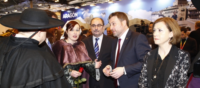 Así, este viernes, en la inauguración oficial del stand de Aragón, el Primer Viernes de Mayo lucía con todo su esplendor en la Feria Internacional de Turismo (Fitur), poniendo en Jaca todas las miradas del más prestigioso escaparate turístico de España. El presidente de Aragón, Javier Lambán, presidía el acto, junto al consejero de Vertebración del Territorio, José Luis Soro. Al acto tampoco faltaban otros jacetanos destacados en diferentes ámbitos, como el secretario de Estado de Servicios Sociales e Igualdad, Mario Garcés. Era la primera vez que la ciudad acudía a esta importante cita como la gran protagonista y con un peso específico en el día institucional de Aragón. También era la primera vez que se promociona el Primer Viernes de Mayo de cara al turismo exterior, por lo que desde el Consistorio se ha impulsado esta participación para lograr una importante proyección para la ciudad, sus tradiciones y la marca Jaca Pirineos, que también ha estado presente en Fitur a través del spot presentado recientemente y que ya se está emitiendo en el Metro de Madrid y en las televisiones autonómicas aragonesa y valenciana.