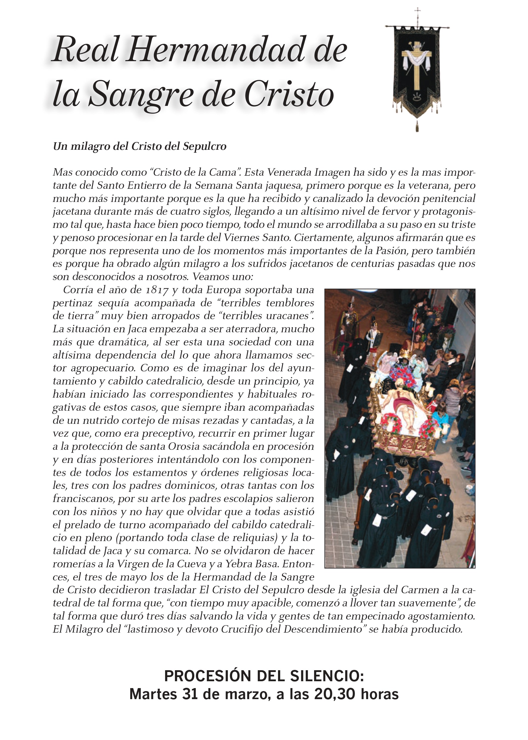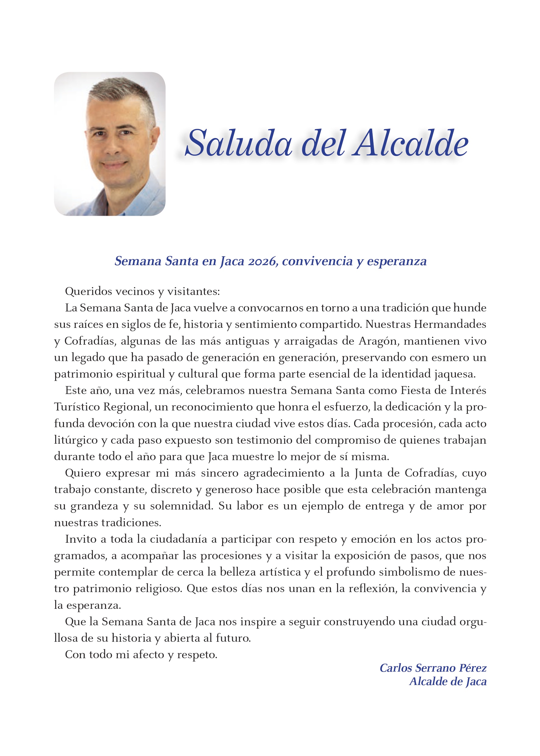 «La Semana Santa de Jaca no es solo de la Junta de Cofradías y Hermandades. Es de todos. También, de los que nos visitan». Así presentaba Carlos Lacadena, presidente de la Junta de Cofradías y Hermandades de Semana Santa de Jaca, el programa de este año. Del 29 de marzo al 5 de abril son las fechas señaladas en La Pasión de este año, que arrancará con el pregón de Toño L’Hotellerie el 27 de marzo y que llega con dos grandes protagonistas: la Cofradía de la Flagelación de Nuestro Señor Jesucristo y la reivindicación del Cuerpo de Soldados Romanos de Jaca con motivo de su 140º aniversario. Más información en ESTE ENLACE