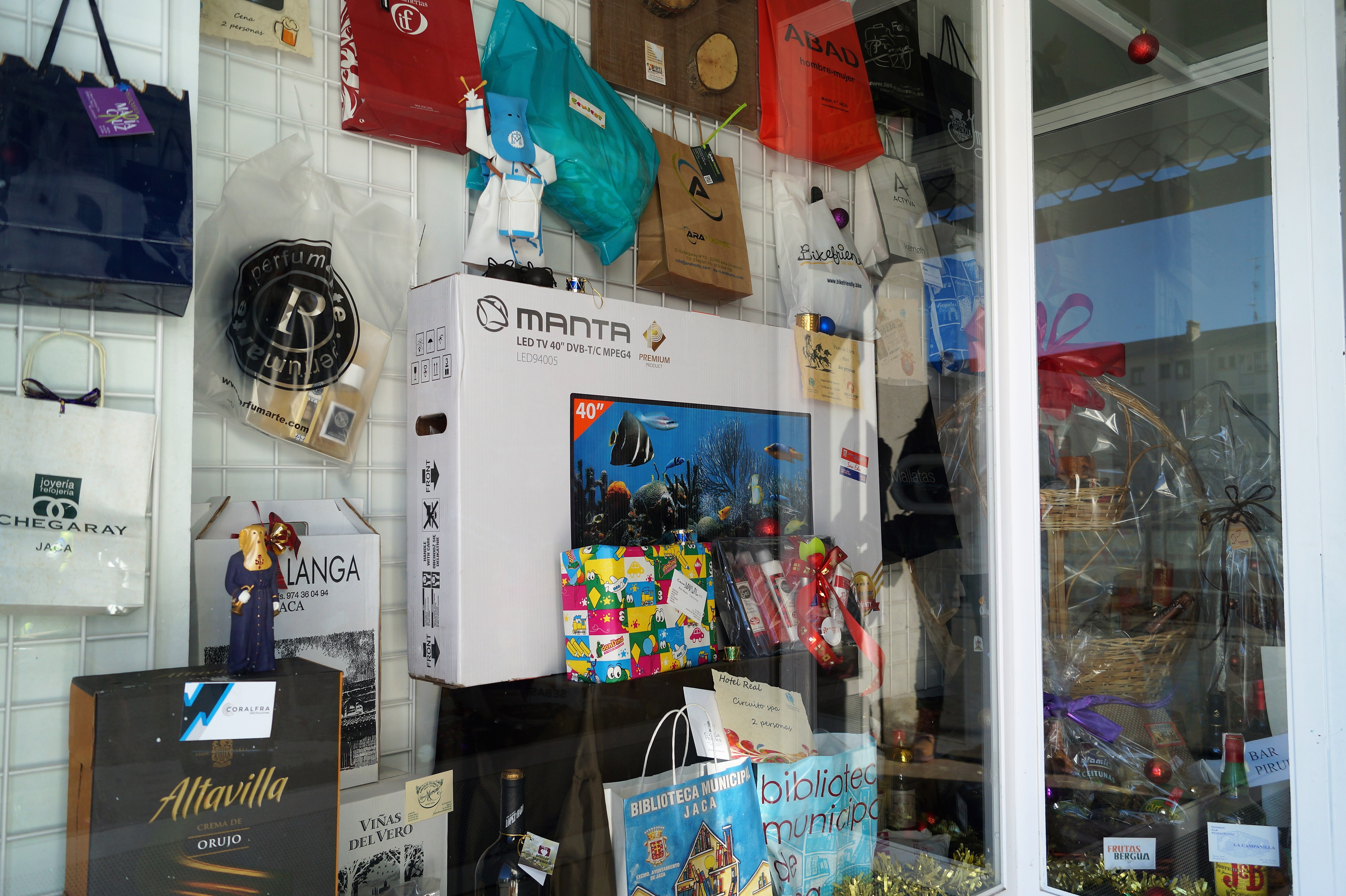 El contenido de la cesta, que se sorteará, como cada año, con la Lotería de Navidad, incluye en esta ocasión, entre otros obsequios, una televisión de 40 pulgadas, viajes, comidas y cenas en restaurantes, delicatessen  gastronómicas, productos textiles y un sinfín de regalos, muchos de ellos ofrecidos por los 120 establecimientos participantes que colaboran con esta actividad de la Junta de Cofradías de Semana Santa, que se ha convertido ya en todo un clásico en las navidades jaquesas. El valor de los premios y el hecho de que, de una u otra manera, la gran mayoría de las familias de la localidad estén implicadas en este acontecimiento, hace que cada año se espere con impaciencia el momento de conocer la cesta de cada edición.