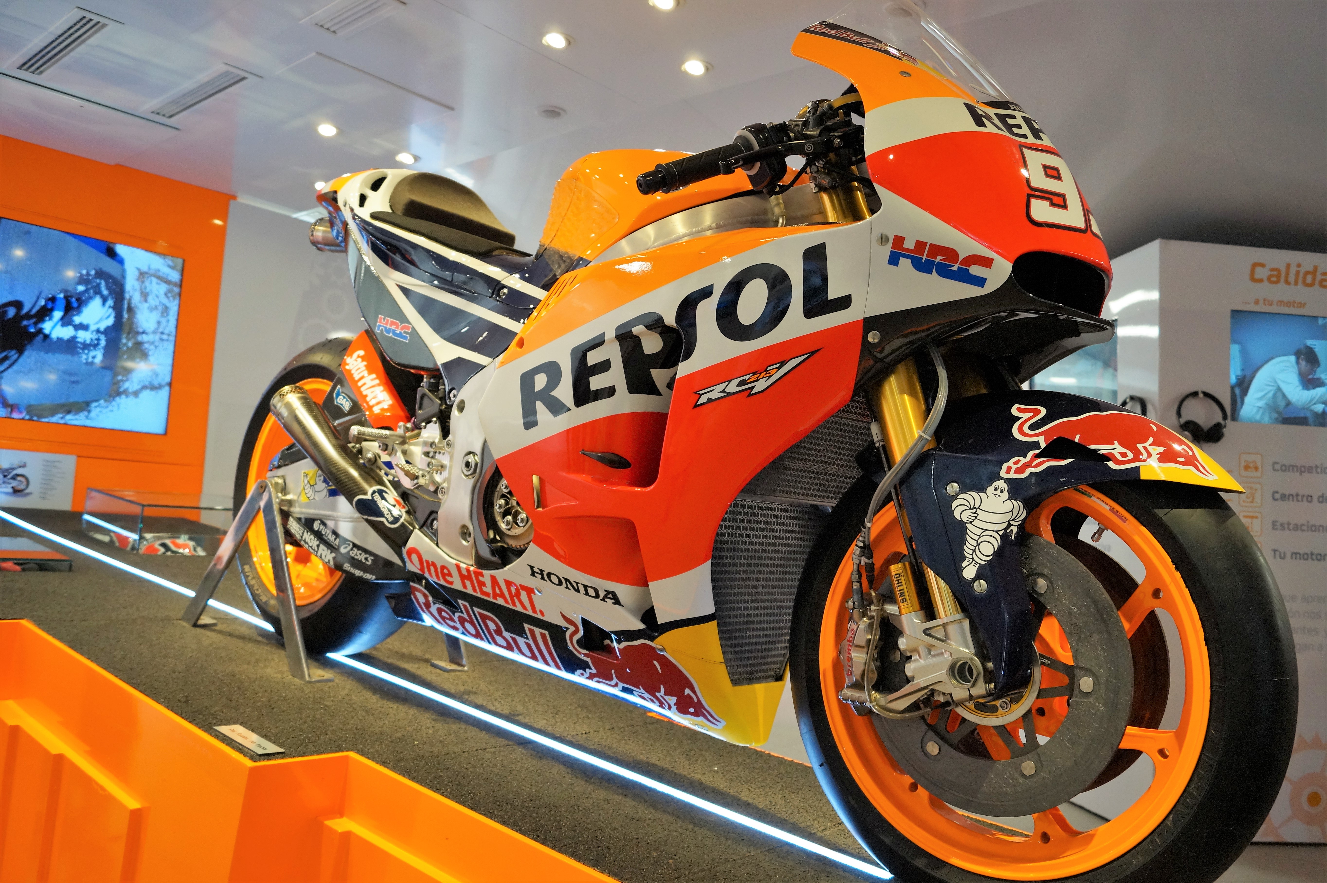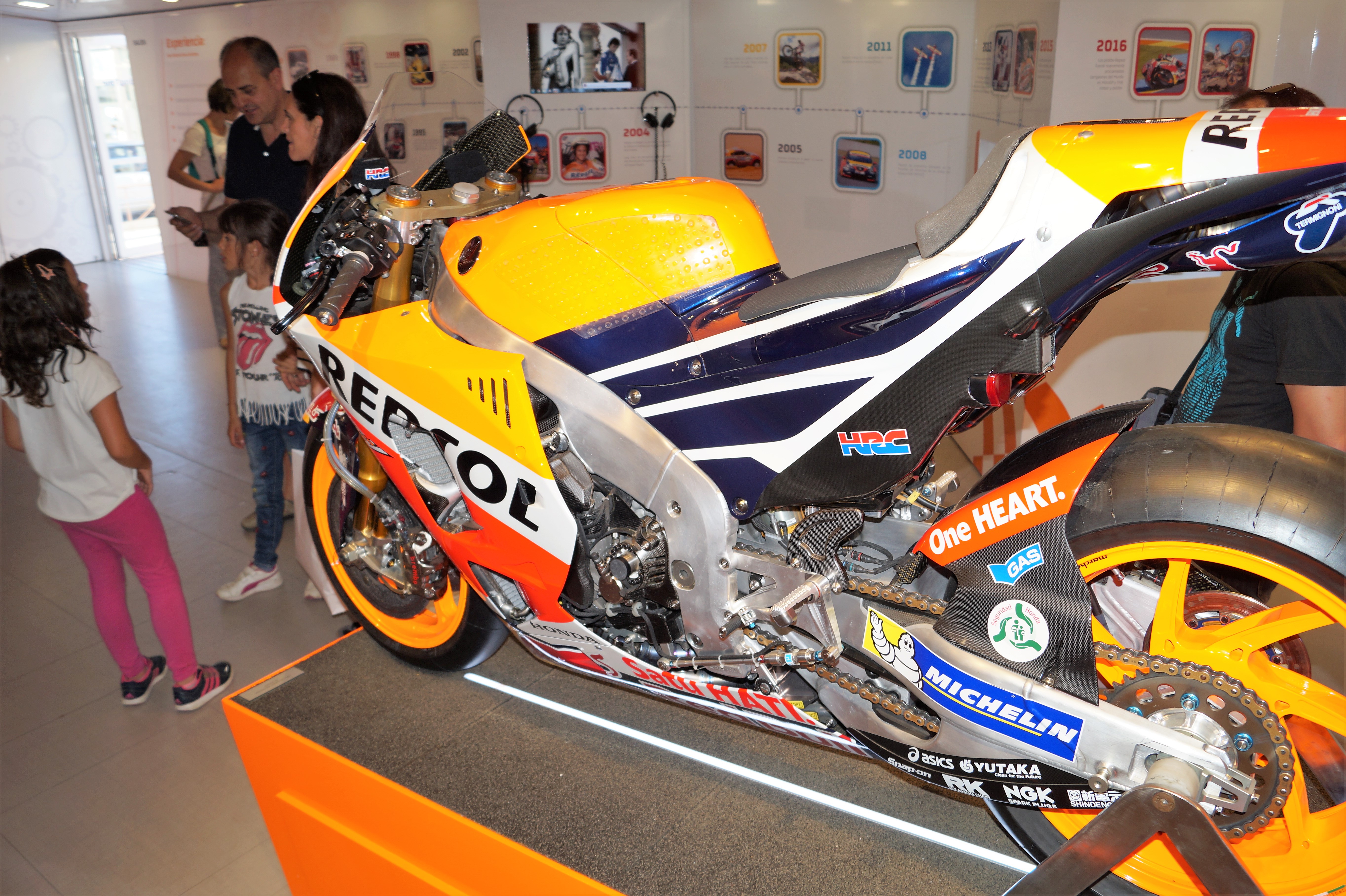 “Desde 1969, venimos patrocinando equipos en alta competición y, hasta ahora, se han producido muchos hitos interesantes; sobre todo, una evolución de Repsol como marca”, señala Conde. De hecho, la exposición ya se pudo visitar en Jaca hace dos años, pero ahora llega con aires renovados. En aquel momento, se registró una media de 2.500 visitas diarias. Entonces se exponía la moto que hizo campeón a Márquez en 2013; hoy, se puede ver en Jaca el modelo de 2016.