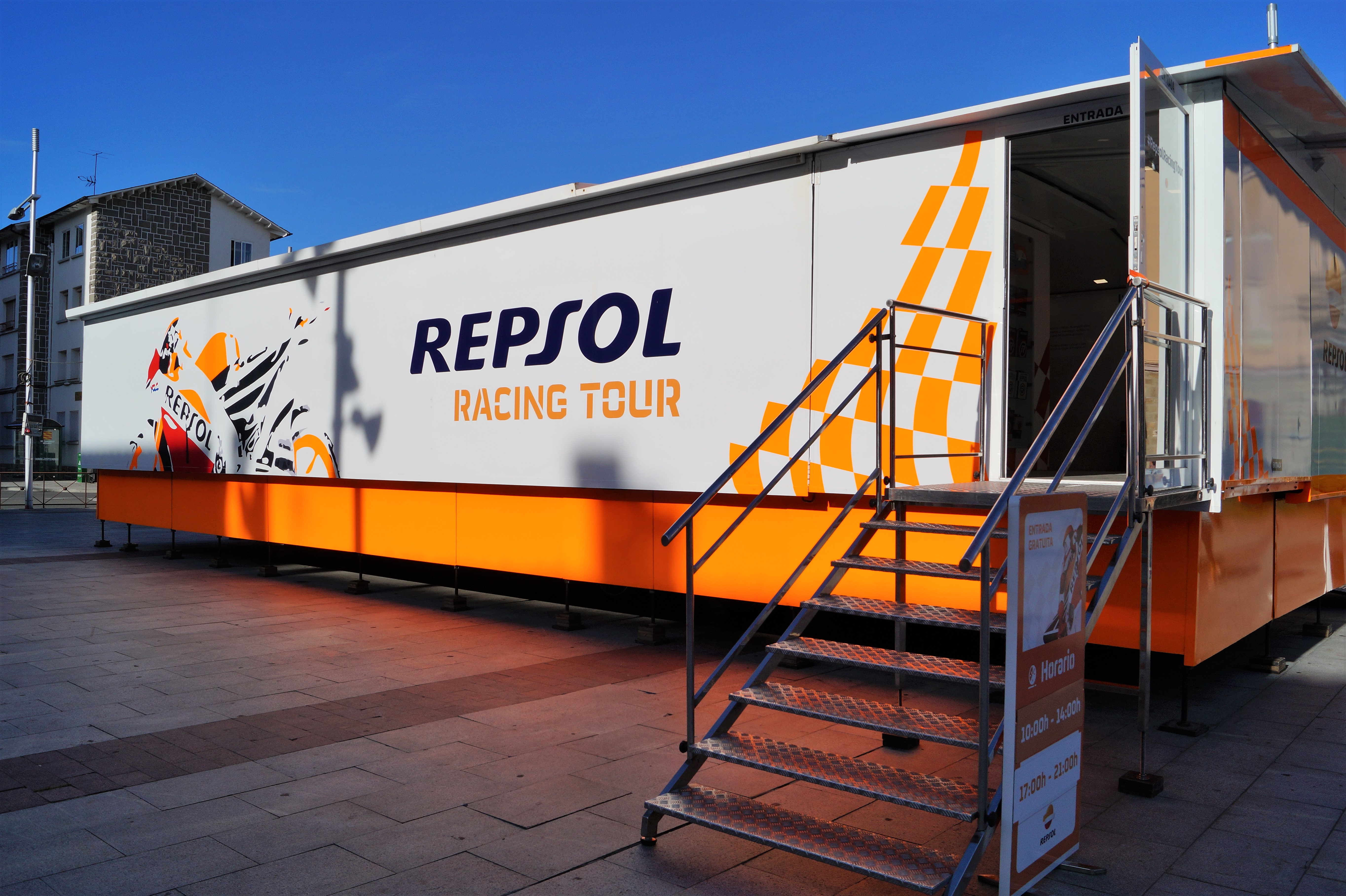 El Repsol Racing Tour exhibe la MotoGP con la que Marc Márquez se proclamó la pasada temporada Campeón del Mundo, tercer título mundial de su palmarés en la máxima categoría del motociclismo y quinto desde que debutó en el Mundial de la mano de Repsol. También muestra, entre otros elementos, los guantes, el casco y las botas del deportista y de otros famosos motociclistas que han corrido para la marca.