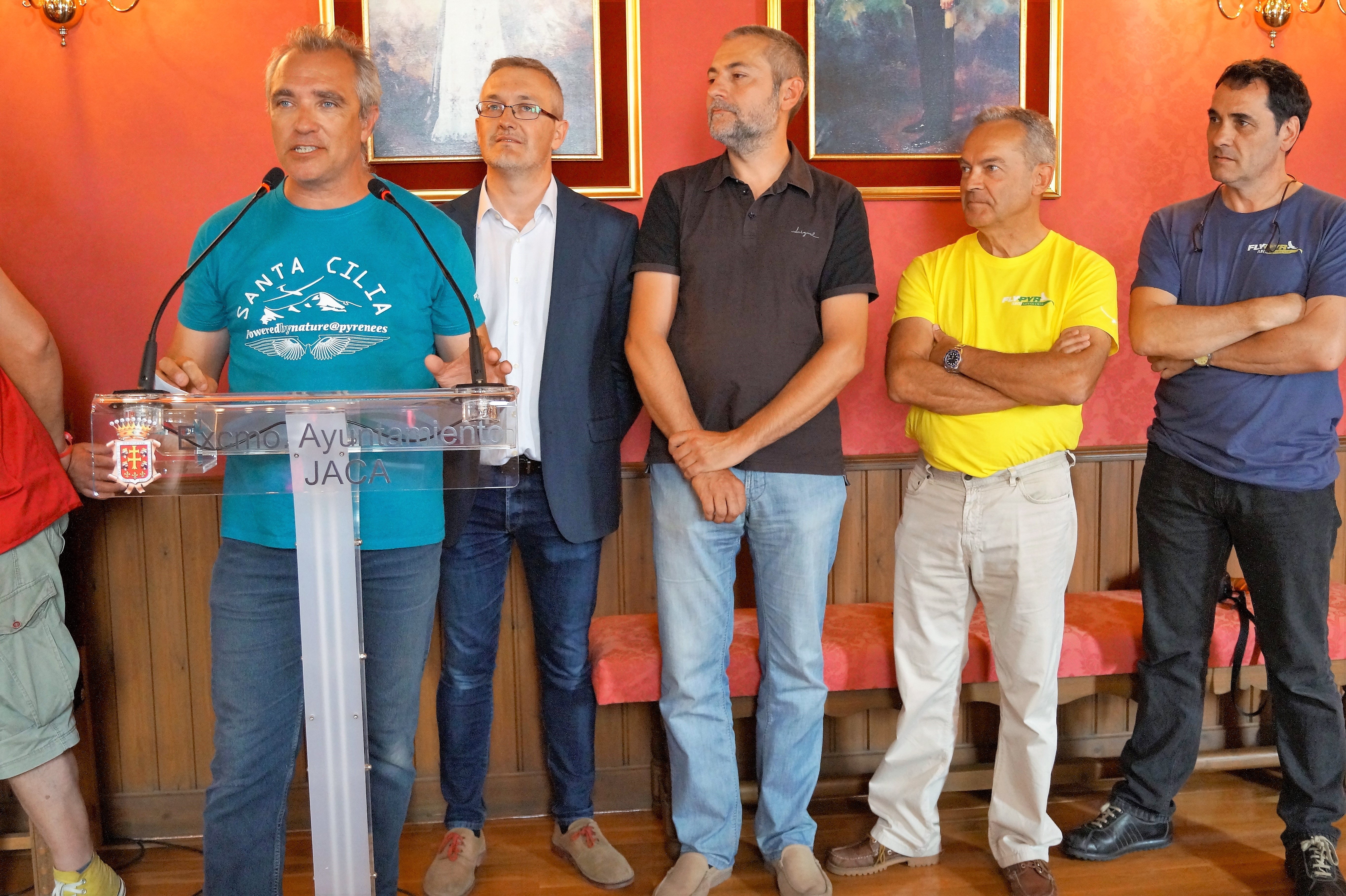 En el acto estaban presentes, como anfitriones, el alcalde de Jaca, Juan Manuel Ramón; José Ramón Ceresuela (en representación de Turismo de Aragón), Luis Ferreira (director gerente del Aeródromo de Santa Cilia), y Juanma Gárate y Miguel Cruchaga en representación del Aeroclub Nimbus. Asimismo, también han participado en la recepción Leonardo Alonso (AEPAL- Asociación Española de Pilotos de Aeronaves Ligeras) y José Luis Olías (presidente del Real Aero Club de España -RACE-).