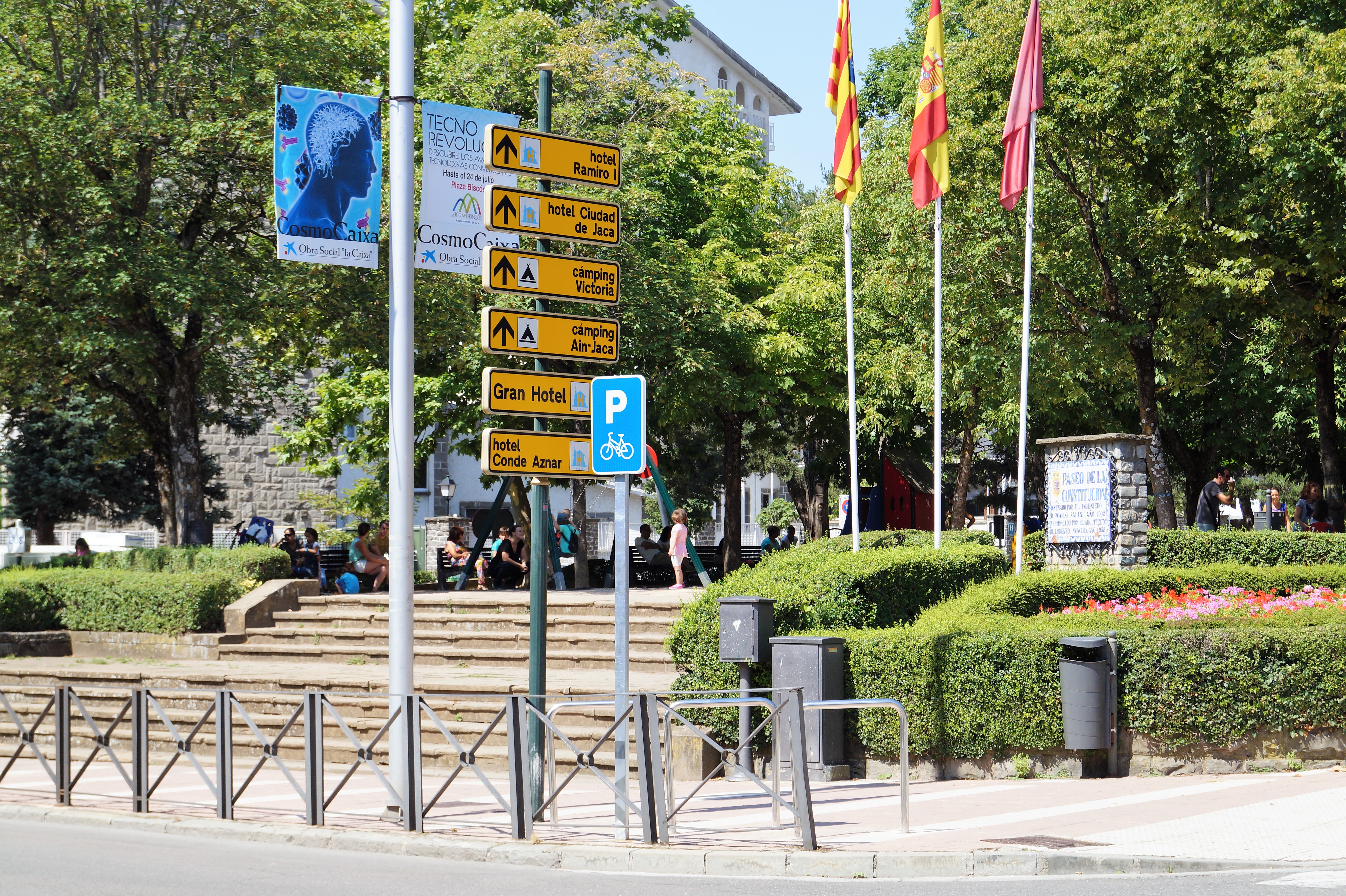 Jaca estrena, este verano, nuevos aparcamientos específicos para bicicletas, que desde hace unos días están ya operativos. El Ayuntamiento de Jaca acaba de instalar este tipo de dotación, con unas barras para facilitar la colocación de las bicicletas, en las aceras o la calzada de diferentes lugares estratégicos.
