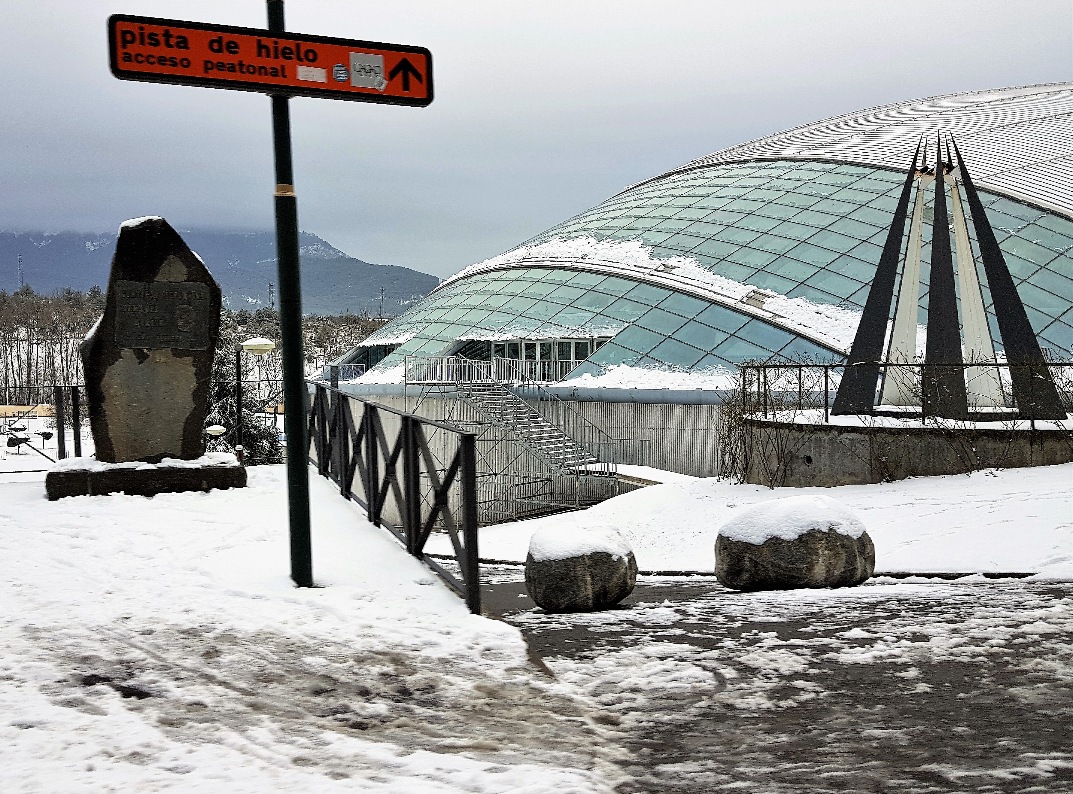 La nevada de este martes dejaba algunos problemas en las calles de Jaca, sobre todo por las zonas en las que formaban placas de hielo.