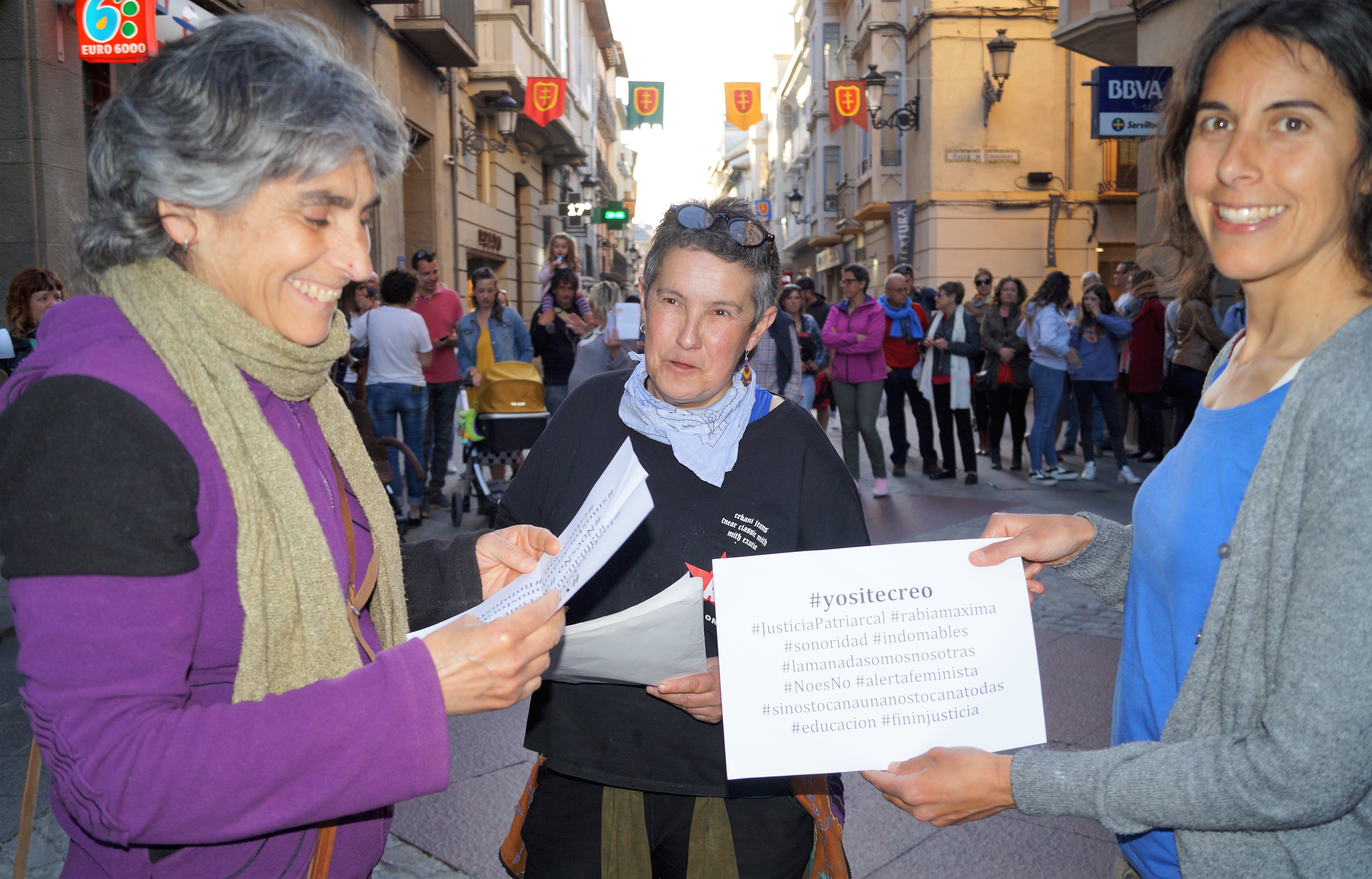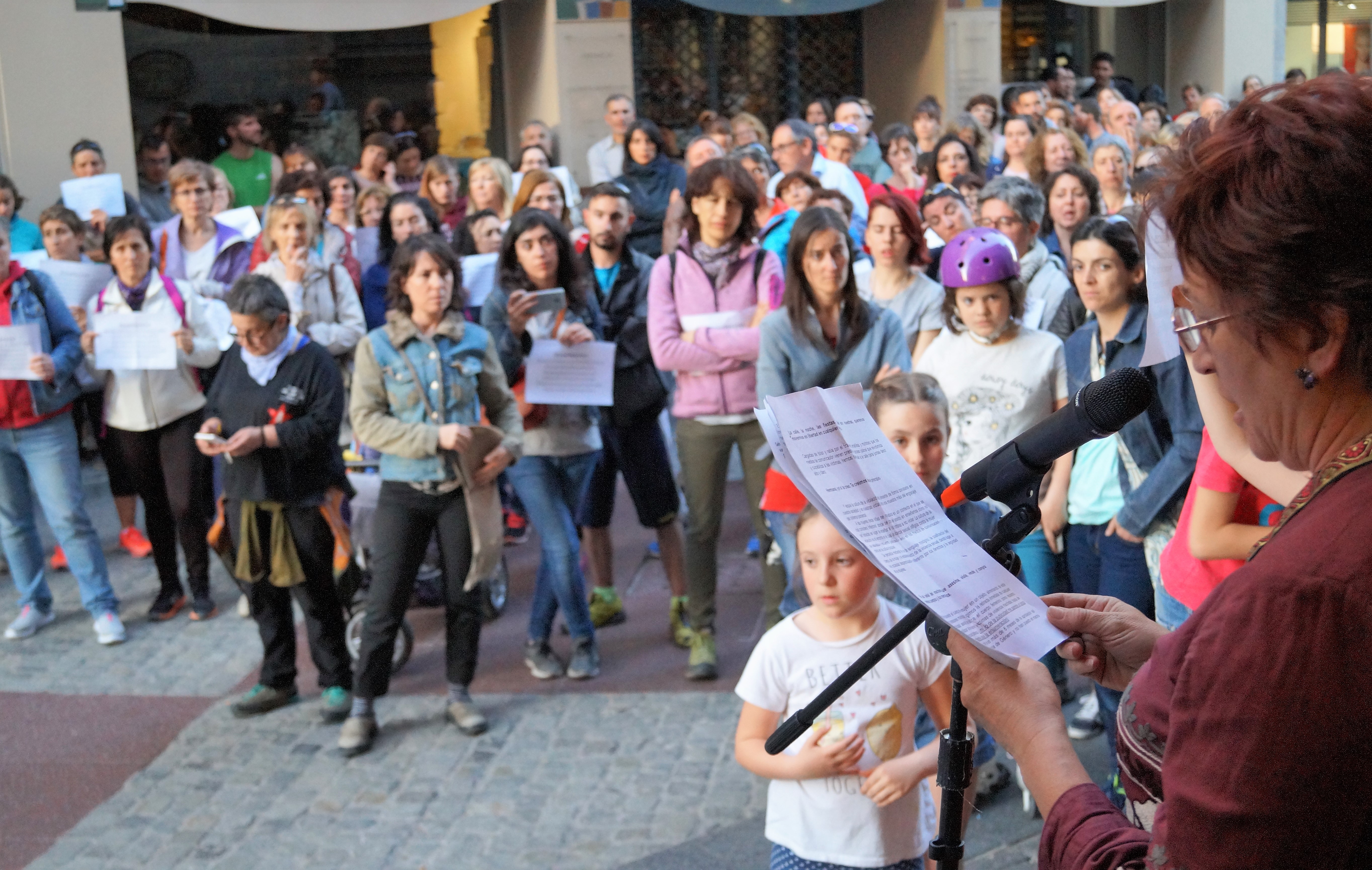 Al grito de «yo sí te creo» y bajo el lema Todas somos la manada, Jaca respondía al llamamiento de la Asamblea 8M Huelga Feminista y el Colectivo de Mujeres Feministas y decenas de ciudadanos respaldaban el acto, que comenzaba en la puerta del Ayuntamiento jaqués pasadas las ocho de la tarde.