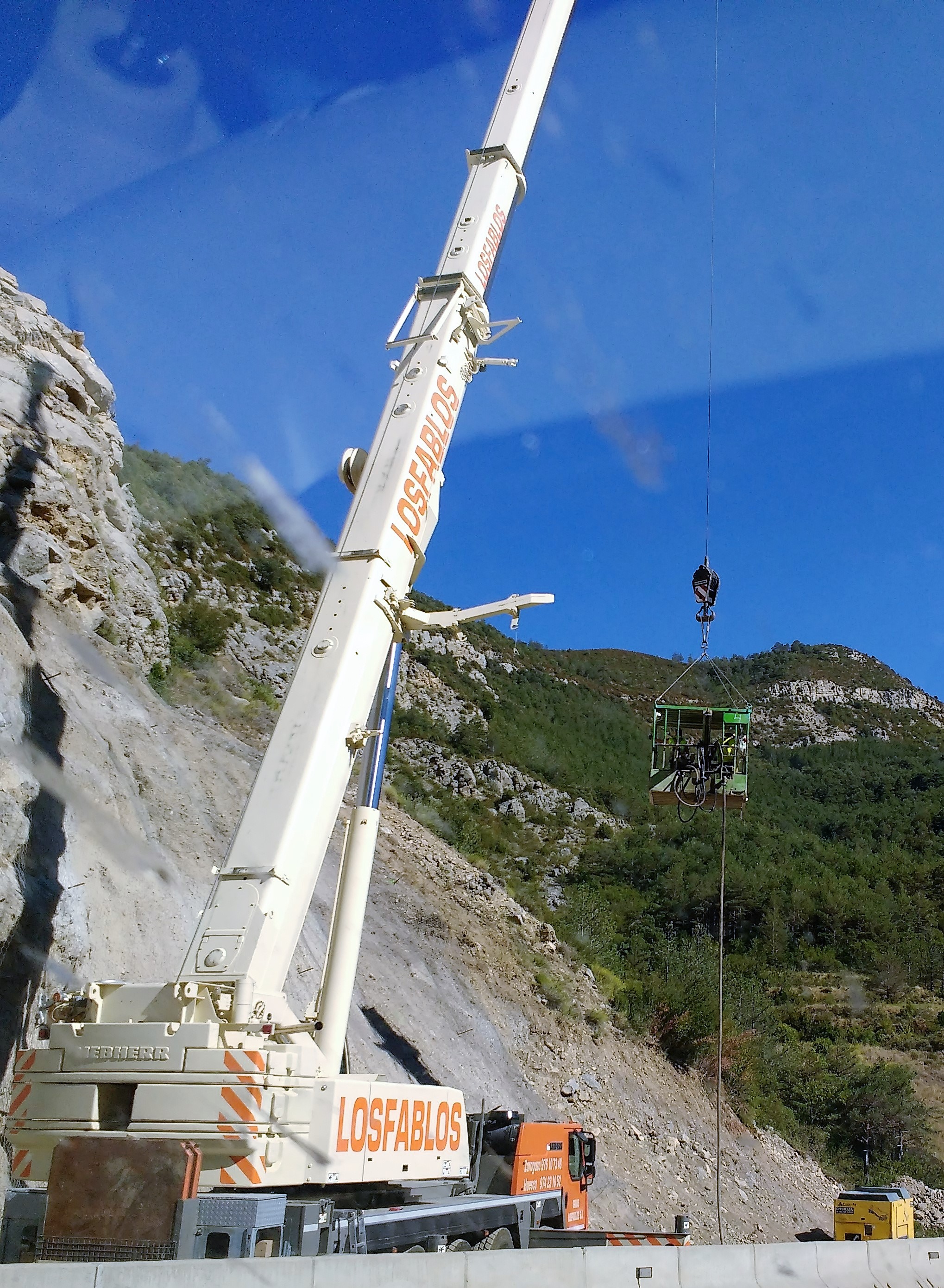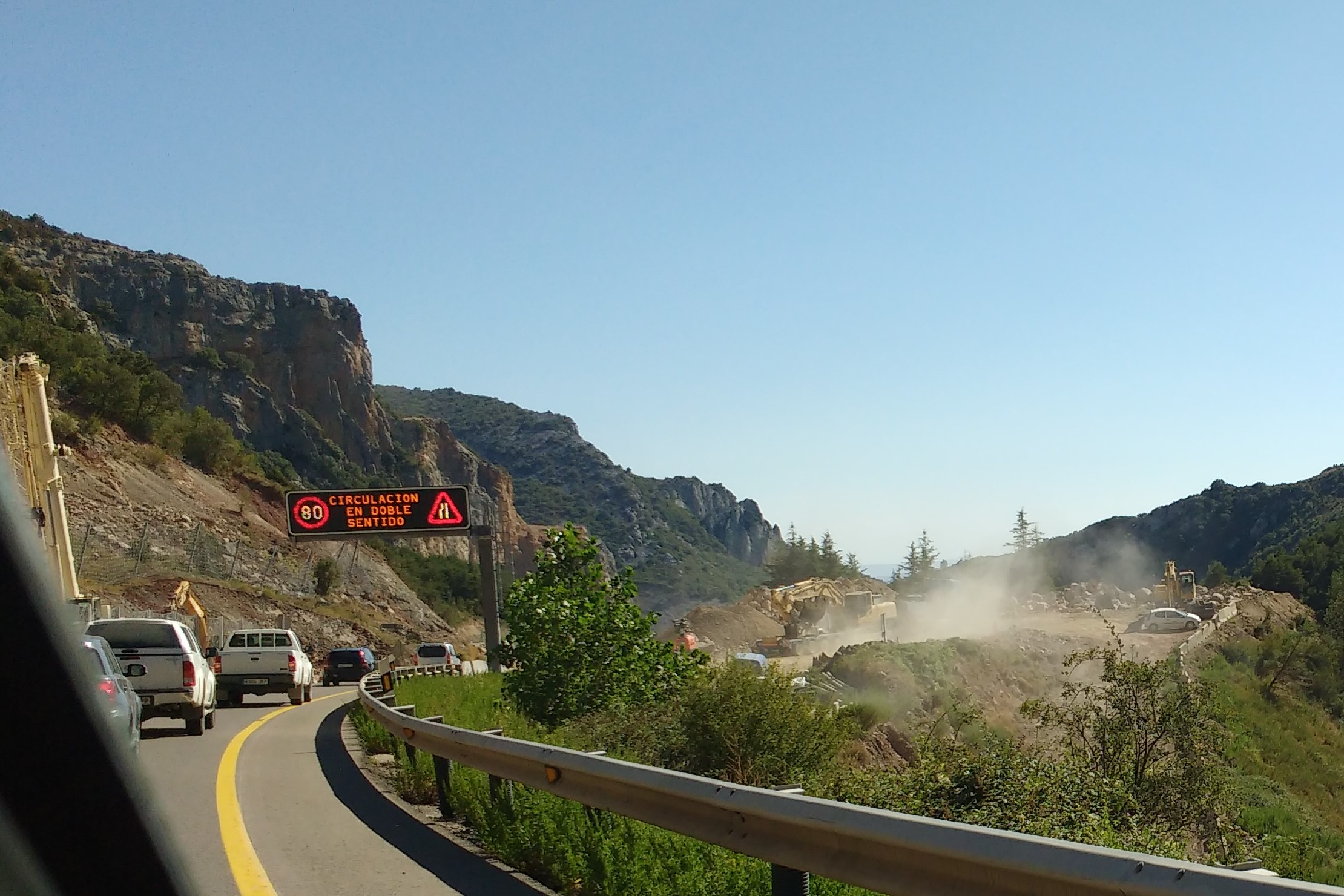 Atascos y retenciones, en ocasiones de varios kilómetros, es lo que se encuentran cada día los usuarios de la carretera A-23, debido a los trabajos de consolidación de la ladera que se están realizando en la zona, entre Nueno y Arguis, en torno al kilómetro 590 de la antigua N330. En esta zona, se han instalado grandes grúas con “jaulas” en las que se eleva a los operarios para poder realizar los trabajos verticales. Además, los vehículos que se emplean para estas obras levantan una gran cantidad de polvo que, en ocasiones, dificulta la visibilidad en la carretera.
