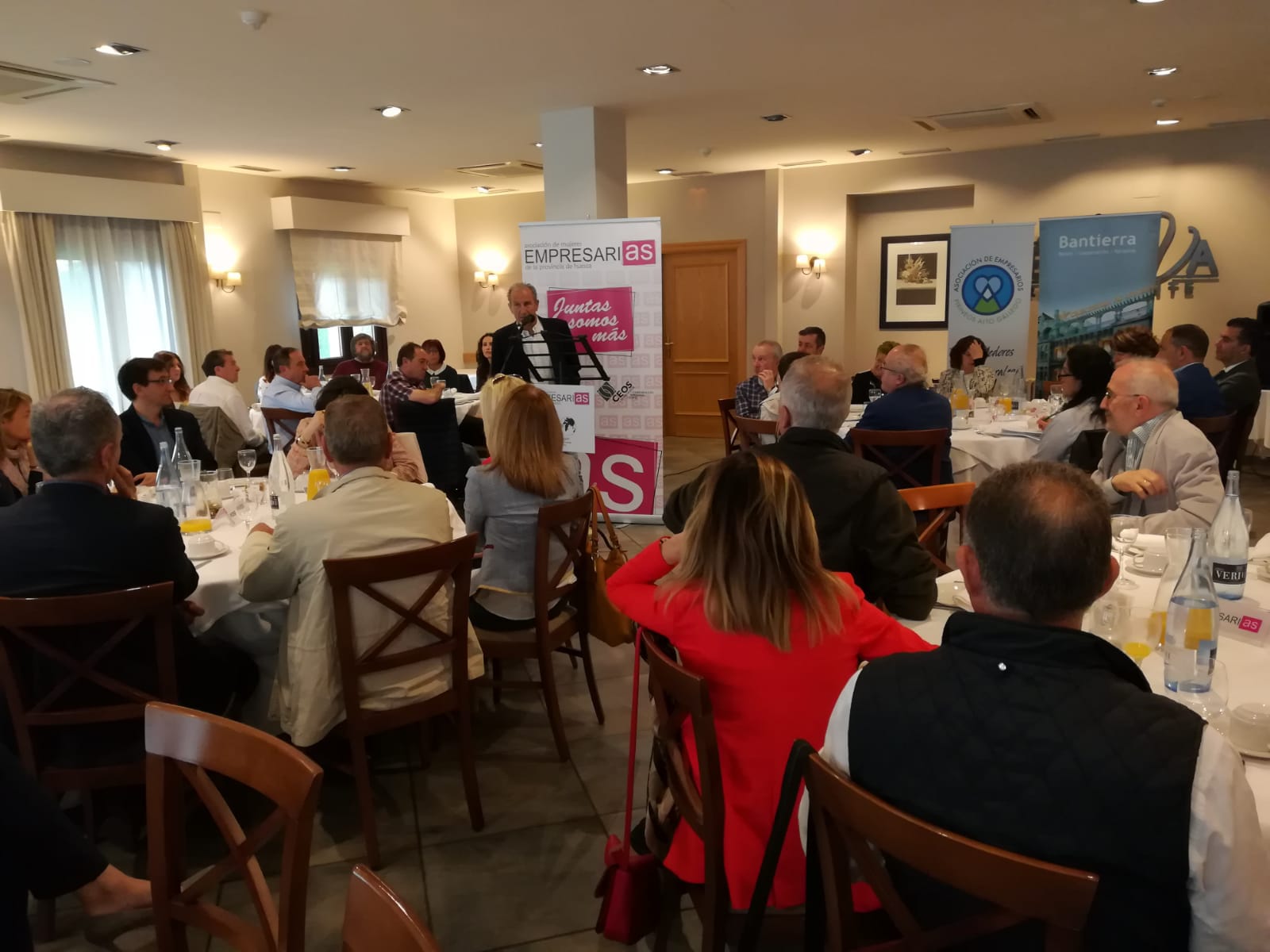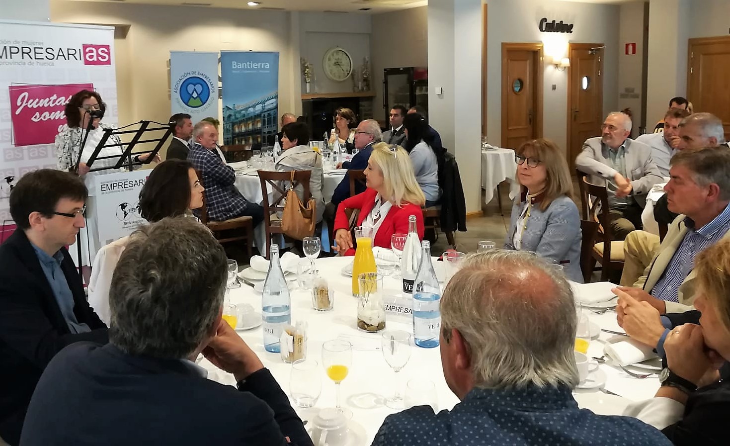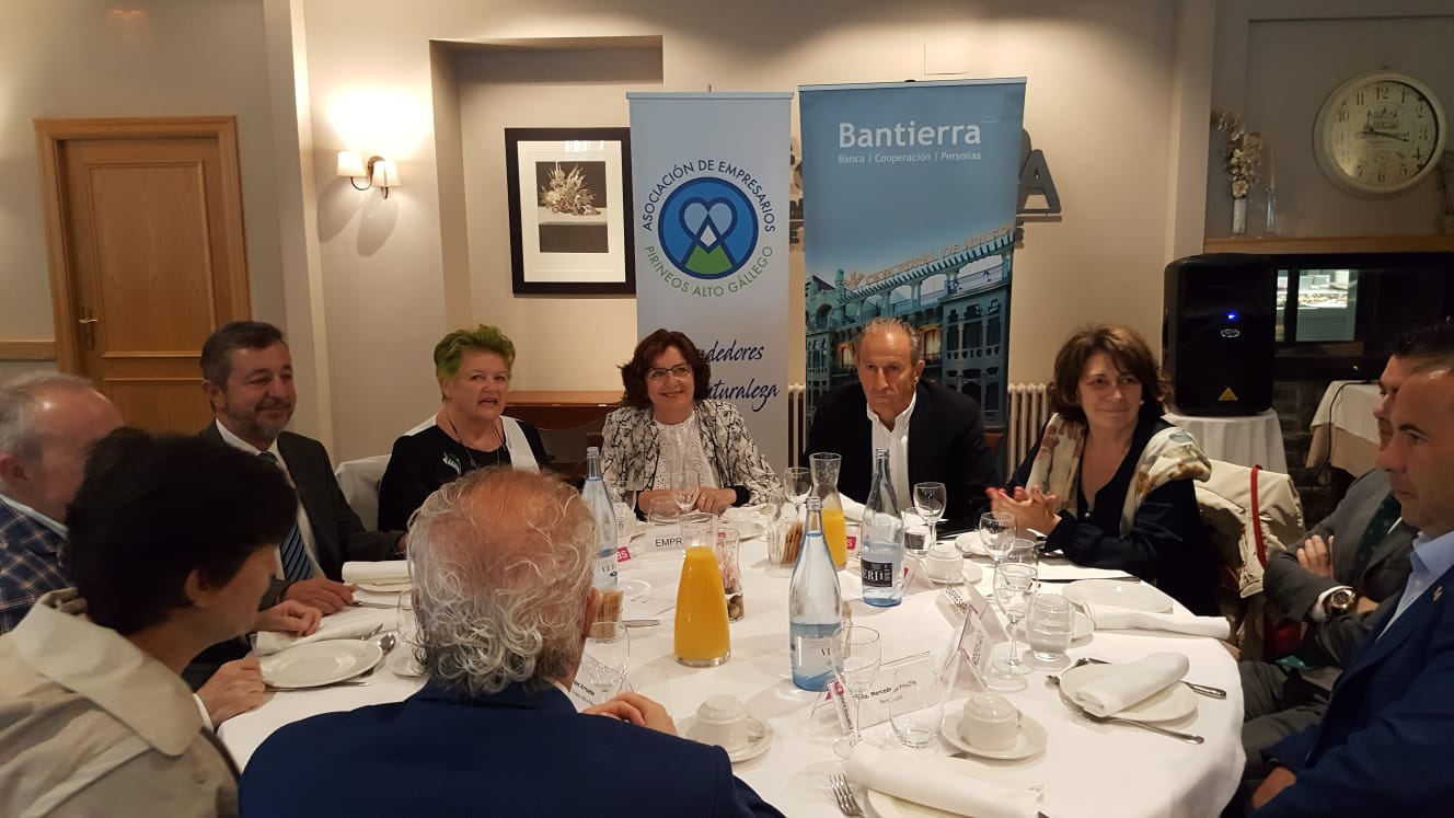 Casi un centenar de personas participaba este lunes en el desayuno coloquio organizado por la Asociación de Empresarios Pirineos Alto Gállego (AEPAG) y la Asociación de Mujeres Empresarias de la Provincia de Huesca (AMEPHU), en el marco de las actividades que desarrolla AMEPHU dirigidas a fomentar y contribuir al desarrollo de las mujeres empresarias de la provincia de Huesca.