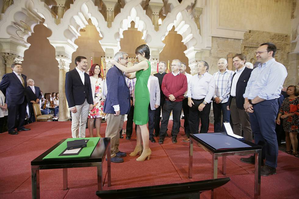 La agrupación altoaragonesa La Caja de Música ha sido la encargada de poner música en directo a la recepción oficial del Día de Aragón en el Patio de Santa Isabel del Palacio de la Aljafería de Zaragoza. El acto, celebrado de forma conjunta por las Cortes Regionales y el Gobierno de Aragón, ha incluido la entrega de los galardones y reconocimientos institucionales anunciados ya en su día: la Medalla de las Cortes de Aragón para La Ronda de Boltaña, el Premio Aragón para el exrector de la Universidad de Zaragoza Manuel López y la Medalla de Aragón a la Educación Aragonesa al CPEIP Ramón y Cajal de Alpartir (Zaragoza).
