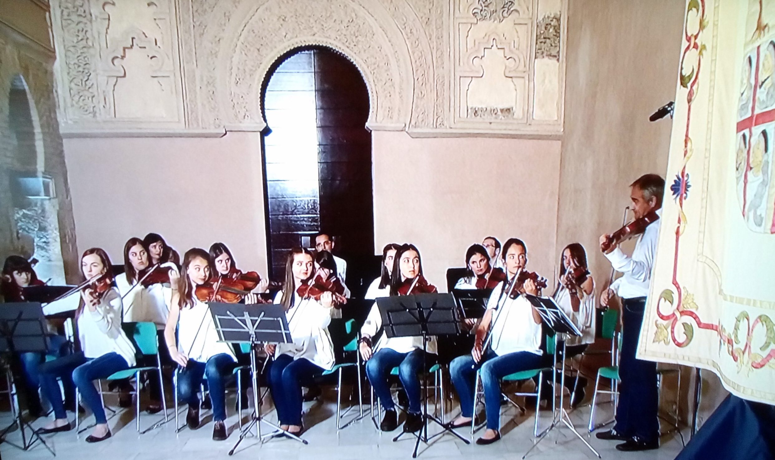 Para esta ocasión, La Caja de Música ha estado compuesta por un grupo de 14 jóvenes violinistas altoaragoneses, procedentes de Sabiñánigo, Jaca, Aísa, El Pueyo de Jaca y Panticosa, acompañados por Beatriz Serrano y Jaime Arilla a los teclados y Carlos Álvarez a la percusión, y dirigidos por Martín Domínguez.