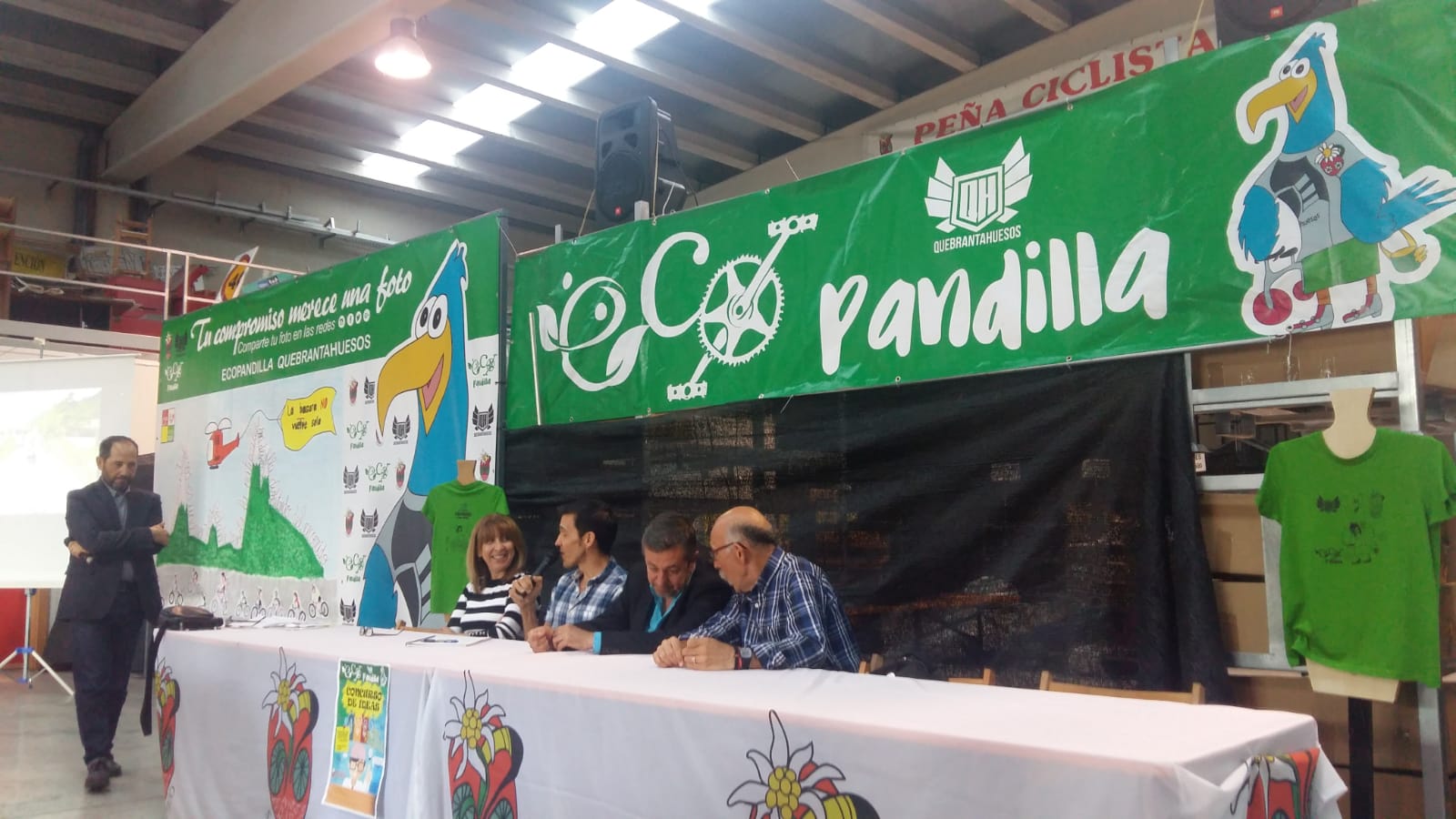 La Peña Ciclista Edelweiss presentaba este martes la Ecopandilla QH 2018, una iniciativa que se lleva a cabo con la participación de diferentes colegios de las comarcas Alto Gállego y Sobrarbe, para promover el respeto al medio ambiente durante la prueba. En el transcurso del acto, que ha contado con la presencia del alcalde, Jesús Lasierra; la diputada provincial y concejala Berta Ferández, el vicepresidente de la Peña Ciclista Edelweisss, Roberto Iglesias, y Sergio Pérez, responsable del programa Aula en bici, se hacía entrega de los premios a los ganadores del concurso de ideas para este año. En total, se presentaron cerca de medio centenar de ideas, de las que han resultado ganadoras un original photocall y una actividad con mensajes en los dorsales que busca el compromiso de los ciclistas con el respeto del medio natural.