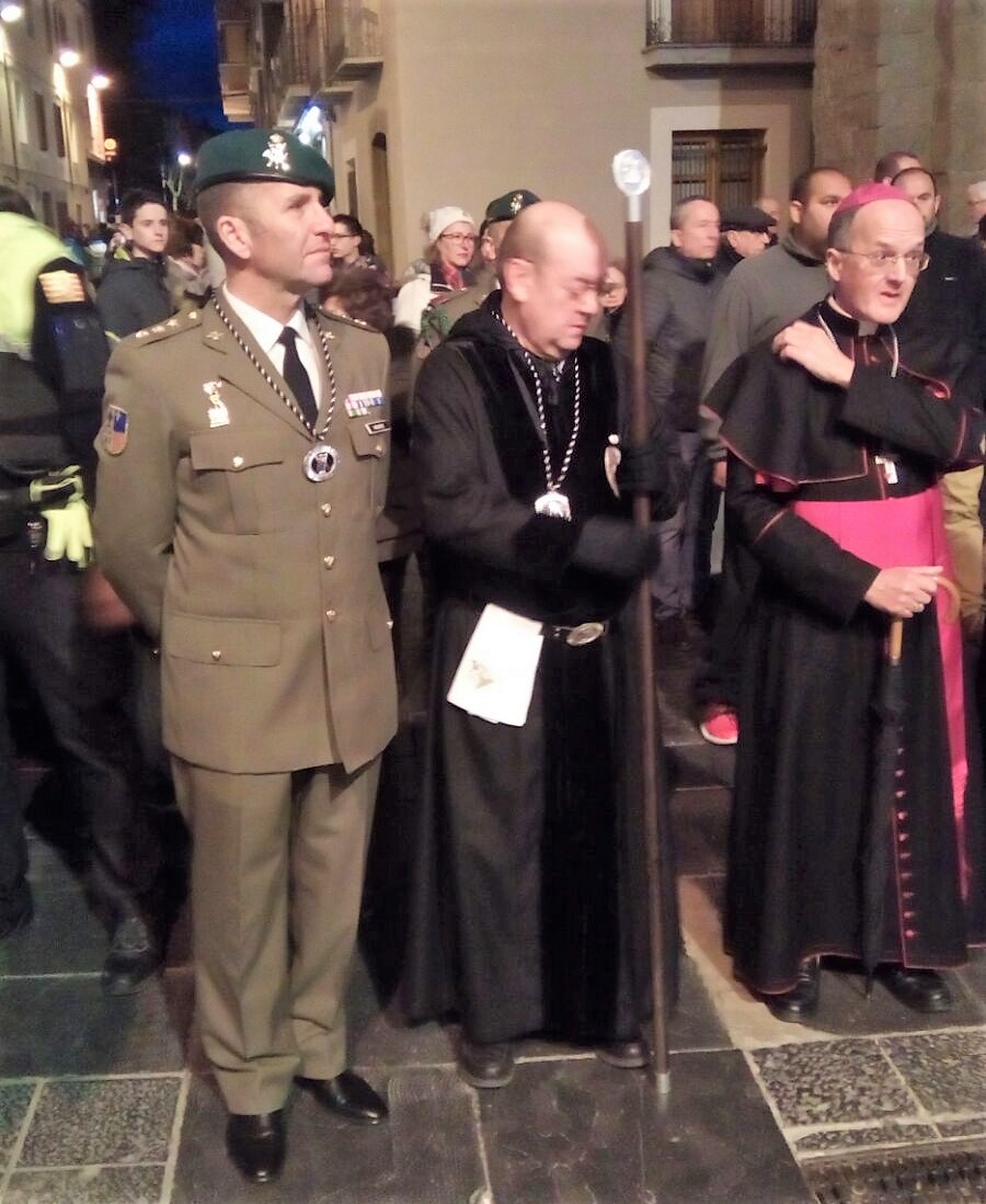 En esta ocasión, el Coronel David Vaquerizo, Comandante Militar de Huesca y Jefe del Regimiento de Infantería Galicia 64 de Cazadores de Montaña, vestido de gala y luciendo la medalla de la Sangre de Cristo -la misma que se concedió a la guarnición en 1968-, presidía la Procesión del Silencio junto al obispo de Jaca, Julián Ruiz, y el presidente de la Hermandad, Manuel Lasala. Junto a él, una escuadra de gastadores formada por cinco militares escoltaba al Cristo de Biscós (también conocido como Cristo de la Salud) durante todo el recorrido.