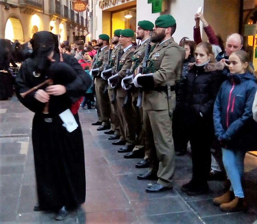 Medio siglo lleva la Guarnición Militar de Jaca escoltando al Cristo de Biscós, el paso de la Real Hermandad de la Sangre de Cristo, como Hermano Honorario, en las procesiones del Martes Santo y del Viernes Santo de la Semana Santa jaquesa (Fiesta de Interés Turístico Regional desde 2011).