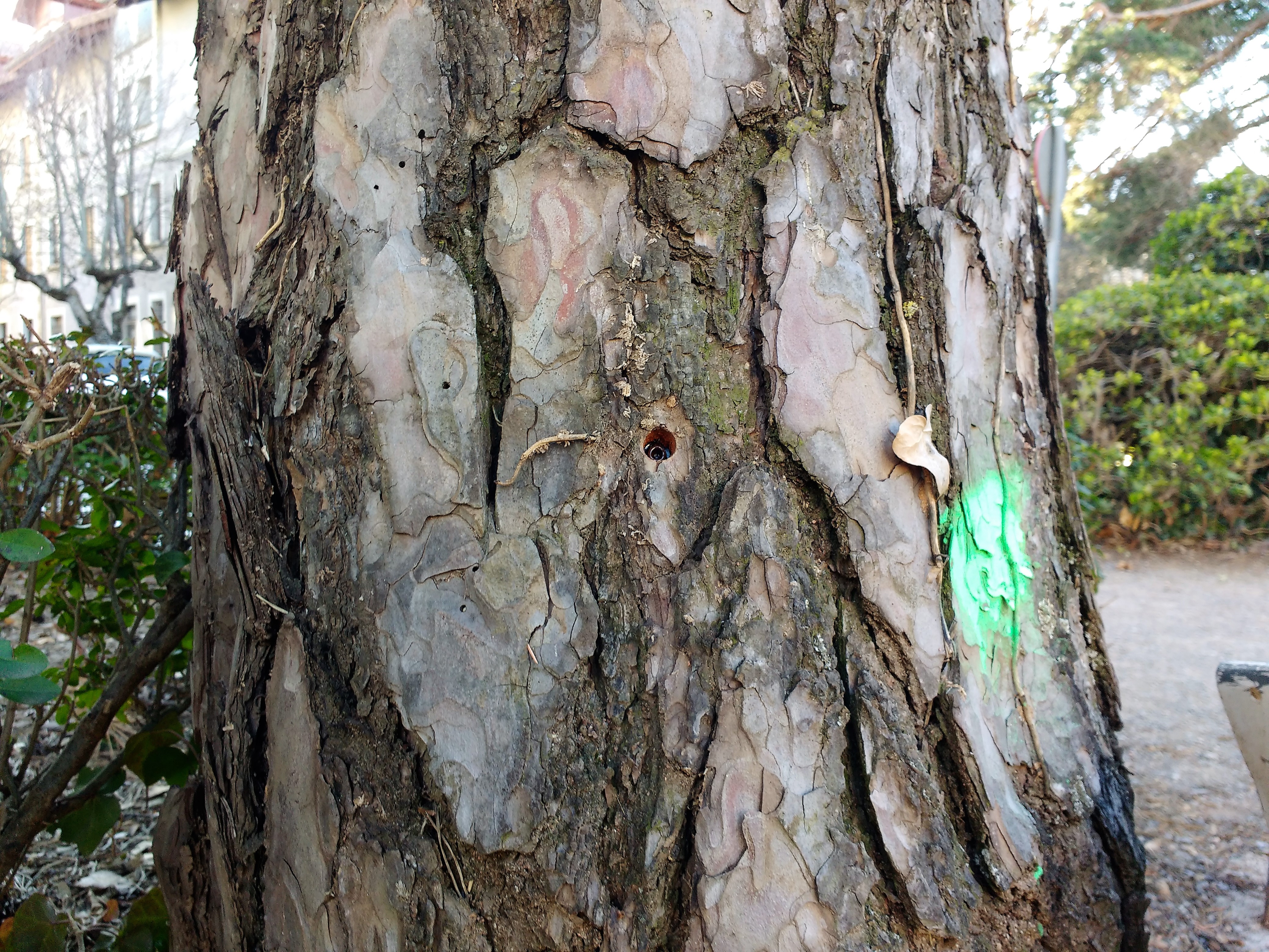 La primera fase de este proceso ya se ha realizado. En Jaca, en el Paseo de la Constitución, por ejemplo, hay ejemplares marcados con una señal verde. Esta marca diferencia los árboles de control, a los que se ha aplicado el tratamiento, del resto. En unas semanas, entre marzo y mayo, se podrán conocer los resultados, que se esperan sean satisfactorios. También entonces se sabrá si este proceso es menos perjudicial para otras especies. A partir de ese momento, los profesionales del Servicio Municipal de Jardines deberán valorar la combinación con otras medidas tradicionales, como las trampas (anillos huecos en torno al tronco donde cae la oruga a una bolsa con tierra) o cortando las bolsas; en todo caso, buscando siempre aquel método que incida lo mínimo posible en el medio natural y que afecte en menor medida a los ecosistemas, explica Fernández.