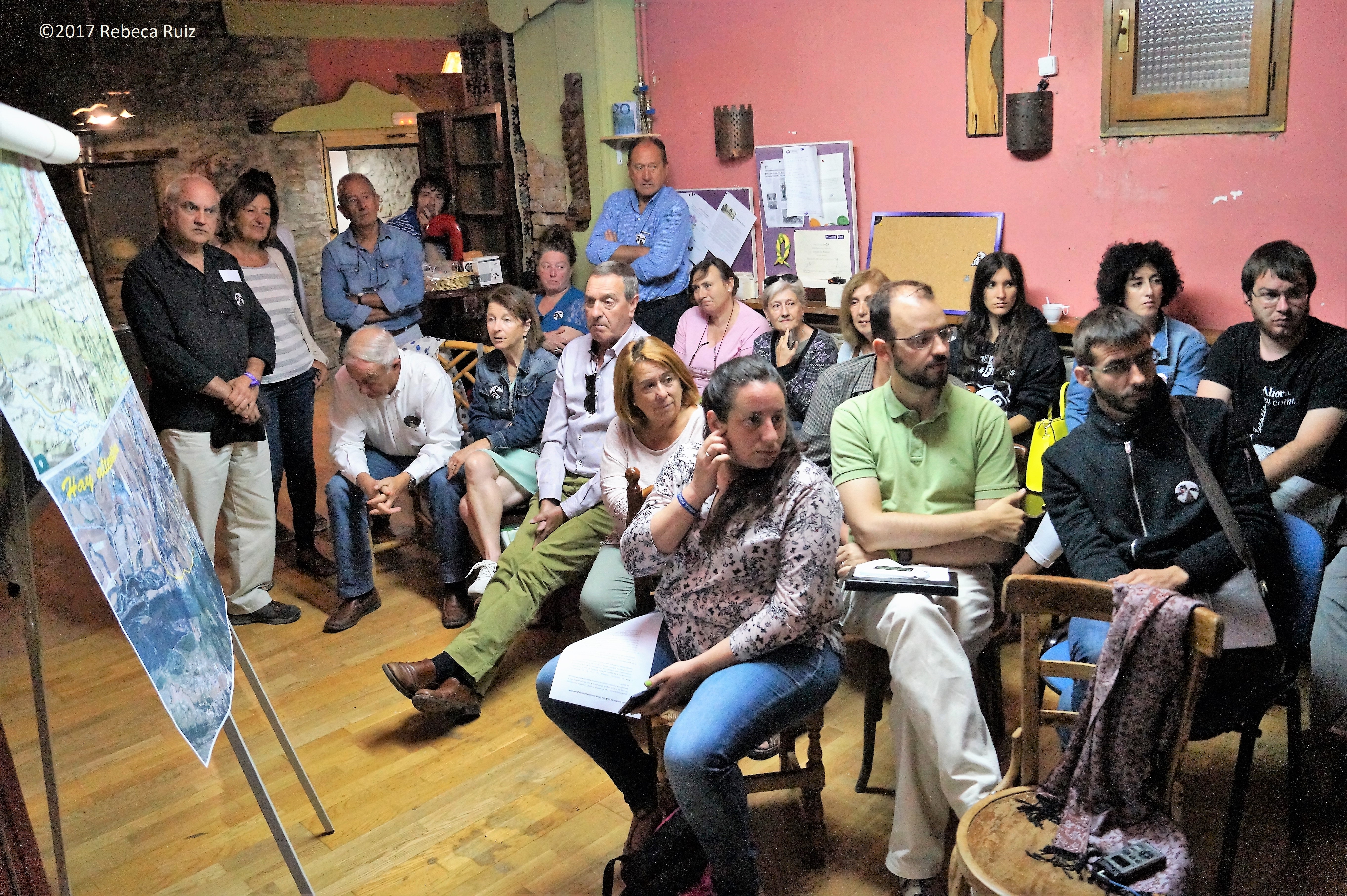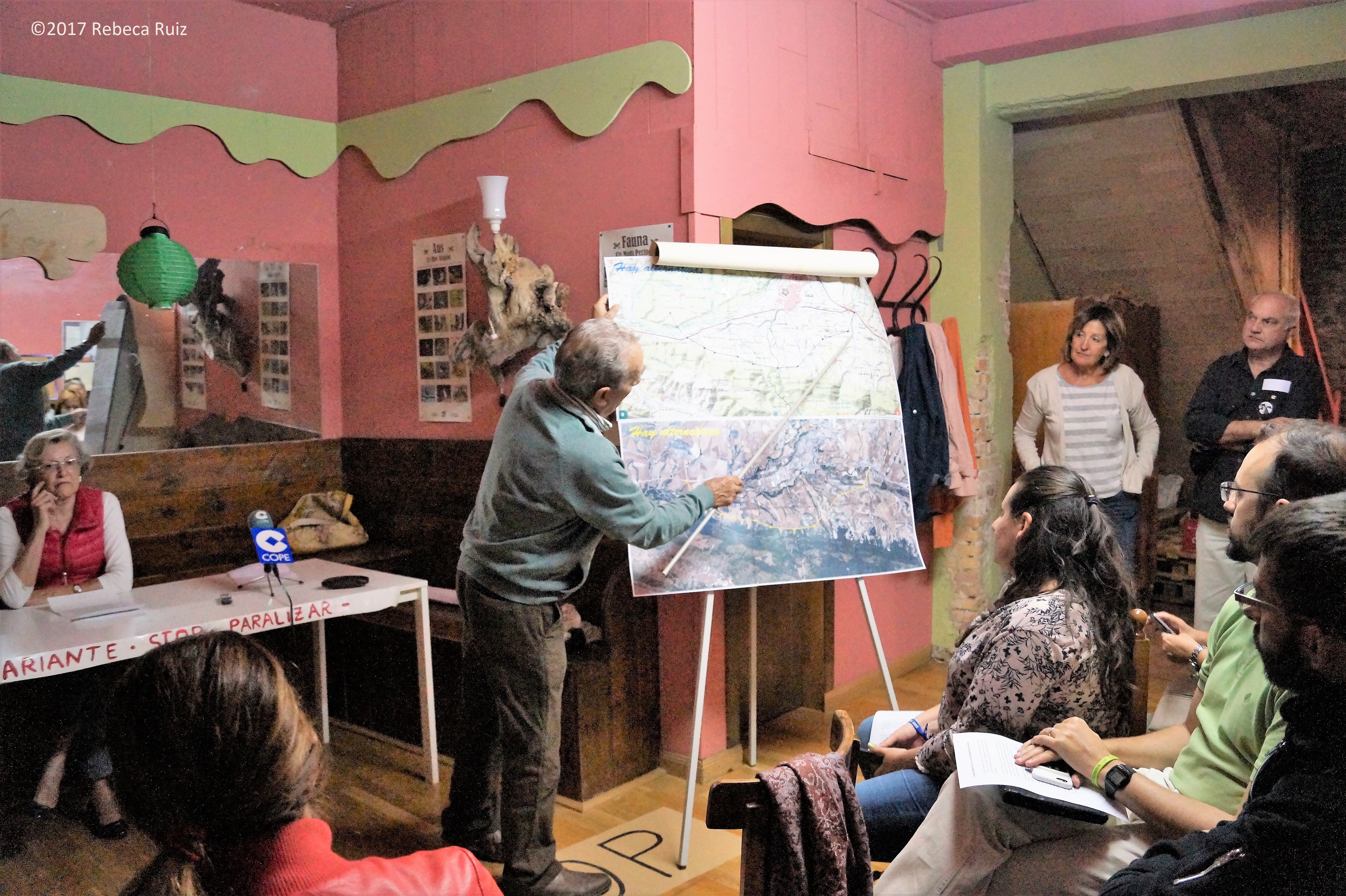 Margarita Langa y Federico Fillat, en representación de los afectados, detallaban, en un acto dirigido a los medios de comunicación, pero en el que también han estado presentes otros interesados y representantes políticos de Podemos, su postura. Se trata de un trazado de 10,3 kilómetros, dibujado con el recurso Iberpix4 del Instituto Geográfico Nacional, que quiere demostrar que es posible conectar Abay con Guasa sin pasar directamente por la zona urbana de Jaca.