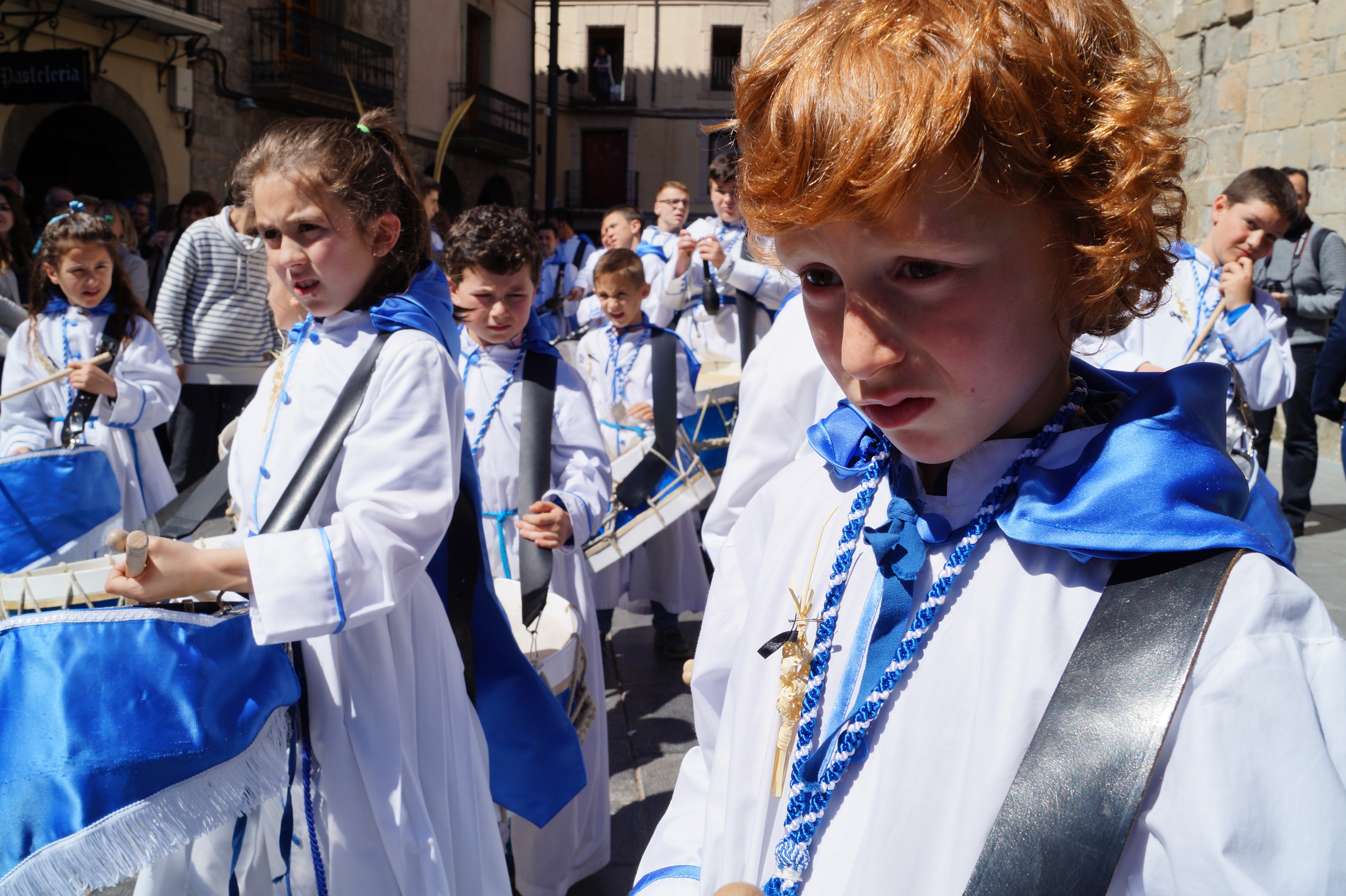 Cada año, el Domingo de Ramos y la fiesta en torno a esta celebración se convierte en una de las citas más representativas y esperadas de la Semana Santa jacetana, catalogada en 2011 como Fiesta de Interés Turístico Regional. A primera hora, cientos de personas eran fieles a la tradición y recogían ya su ramo de olivo en la Plaza de Biscós. Al rato, comenzaban a escucharse los primeros tambores y bombos, que, cumpliendo con el ritual, se colocaban junto al entrañable paso de La Entrada de Jesús en Jerusalén, con la plaza llena de público, y a la espera de la bendición que daría lugar a la posterior procesión por el centro de Jaca hasta la Catedral.