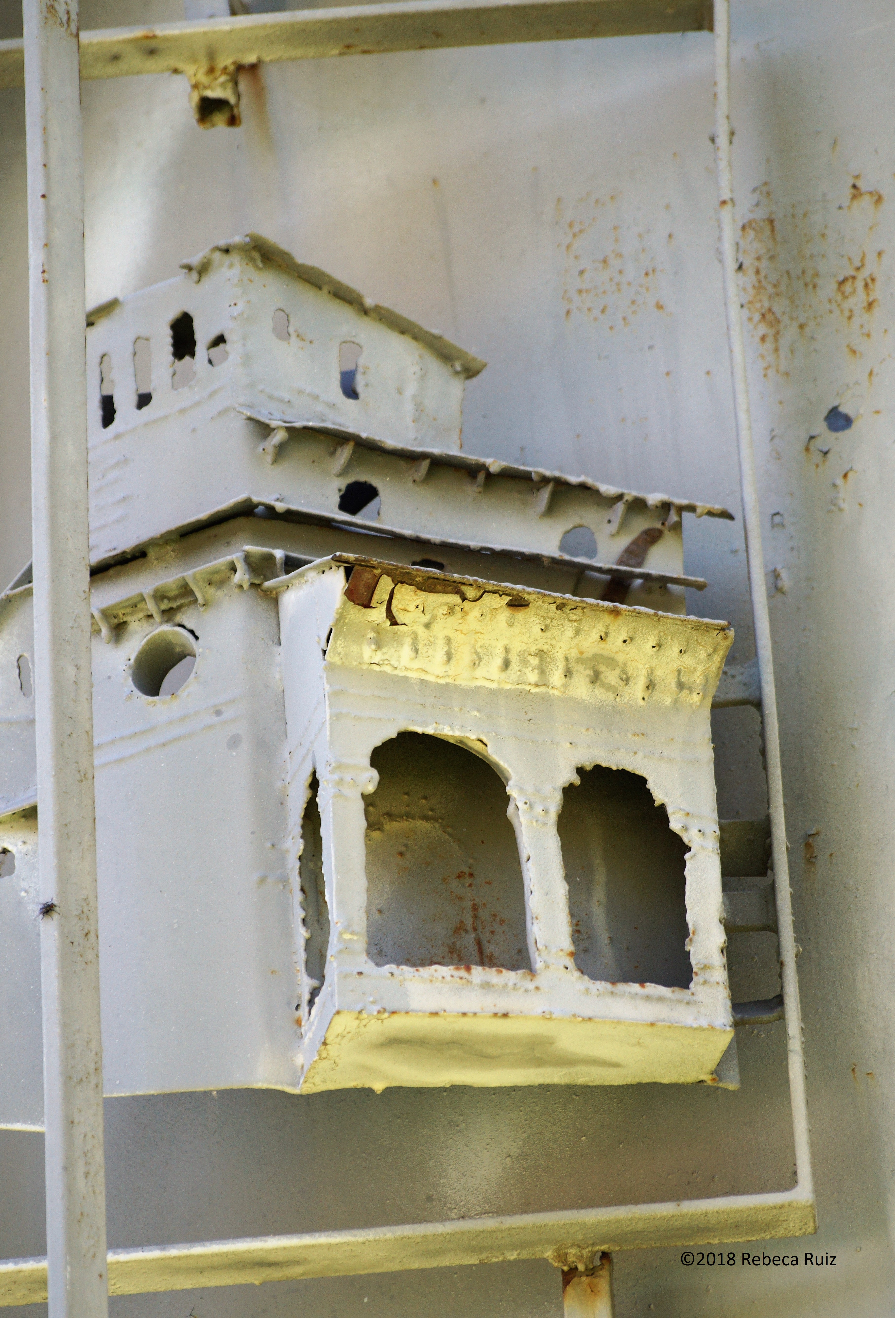 El Monumento a la Jacetania, obra del escultor Ángel Orensanz, sufre un preocupante deterioro cuyos efectos son cada vez más visibles. El monumento fue instalado en 1969 y es de hierro policromado y, en teoría, tratado para poder ser expuesto en el exterior. Sin embargo, el paso del tiempo, la falta de mantenimiento y las inclemencias meteorológicas están causando estragos en la obra. De hecho, es visible cómo la capa exterior se va desprendiendo y las manchas de óxido afloran a la superficie. No hay que olvidar que Ángel Orensanz es el artista aragonés más reconocido internacionalmente y que es uno de los escultores con más prestigio a nivel mundial, habiendo recibido innumerables reconocimientos a lo largo de su trayectoria.
