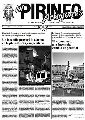 La escultura fue colocada en la Plaza de Biscós el 11 de abril de 1969. 36 años más tarde, El 11 de noviembre de 2005, el semanario El Pirineo Aragonés recogía las labores de desanclado y traslado de su lugar original. A esta crítica se sumaron otras voces, como la de la Asociación Cultural Sancho Ramírez, que en 2008 también hacía patente su desacuerdo en las páginas del Heraldo de Aragón.