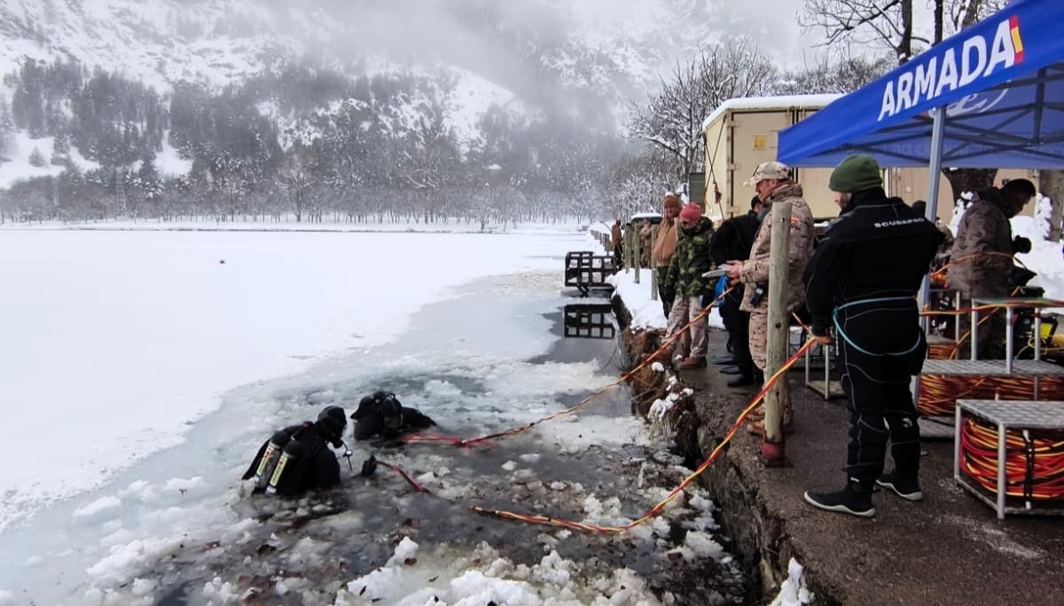 El lago helado del Balneario de Panticosa pone a prueba a los buzos de la Armada