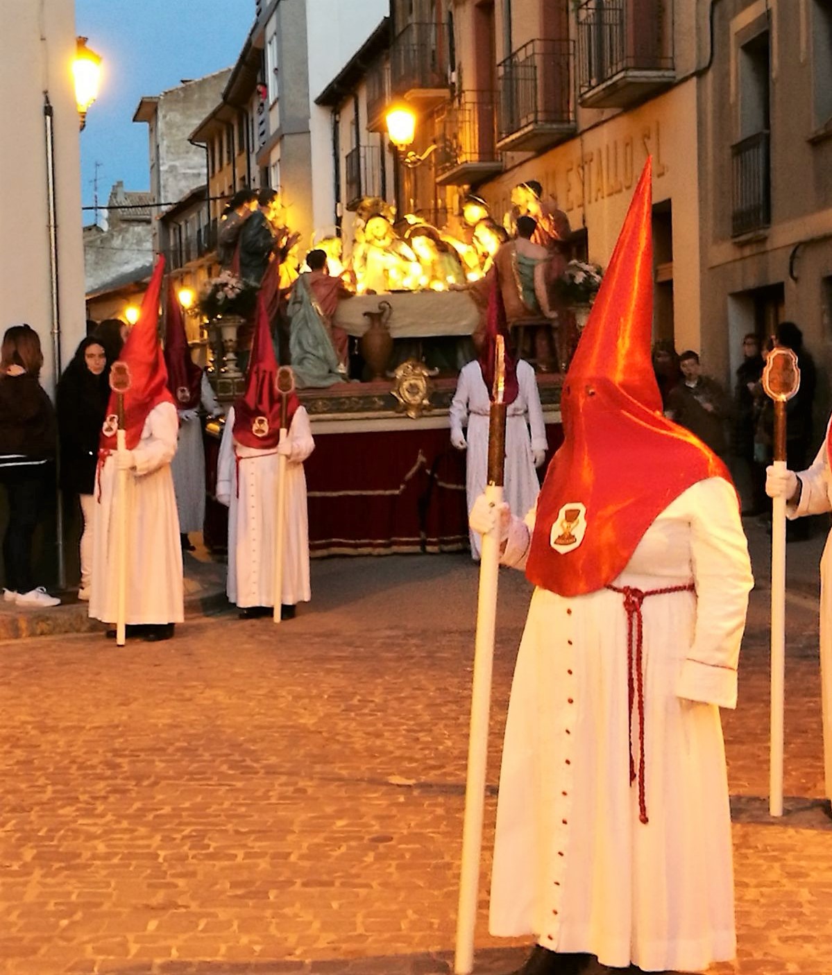 Previamente, las calles del casco histórico se dejaban invadir por la solemnidad y el respeto de la procesión de la Oración en el Huerto y la Santa Cena, en el ecuador de la programación de desfiles que forman parte de la Pasión jaquesa (Fiesta de Interés Turístico Regional desde 2011).